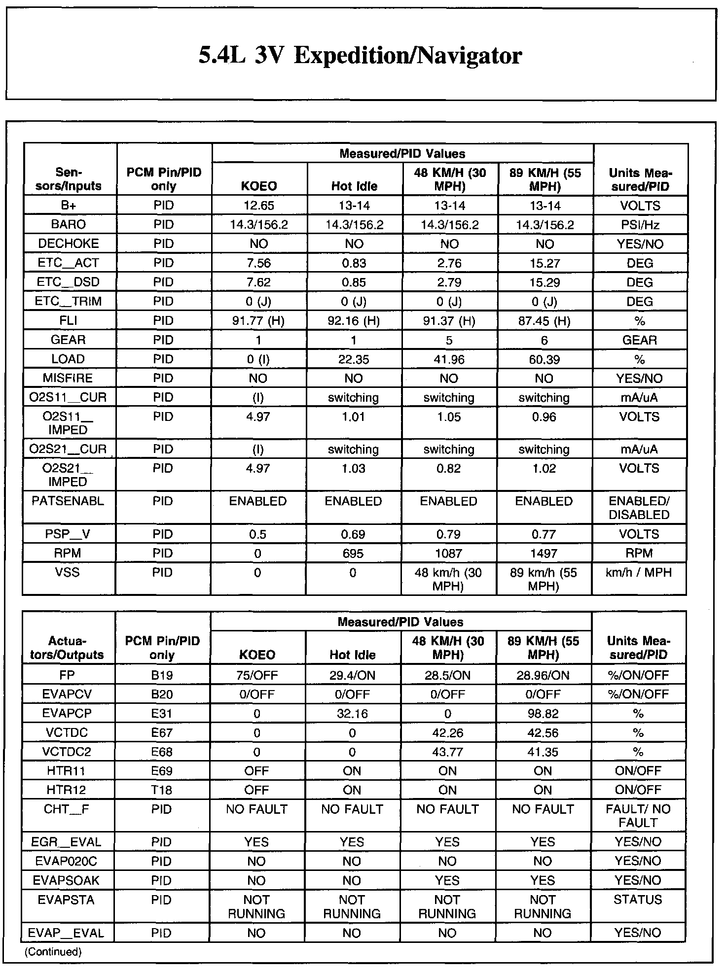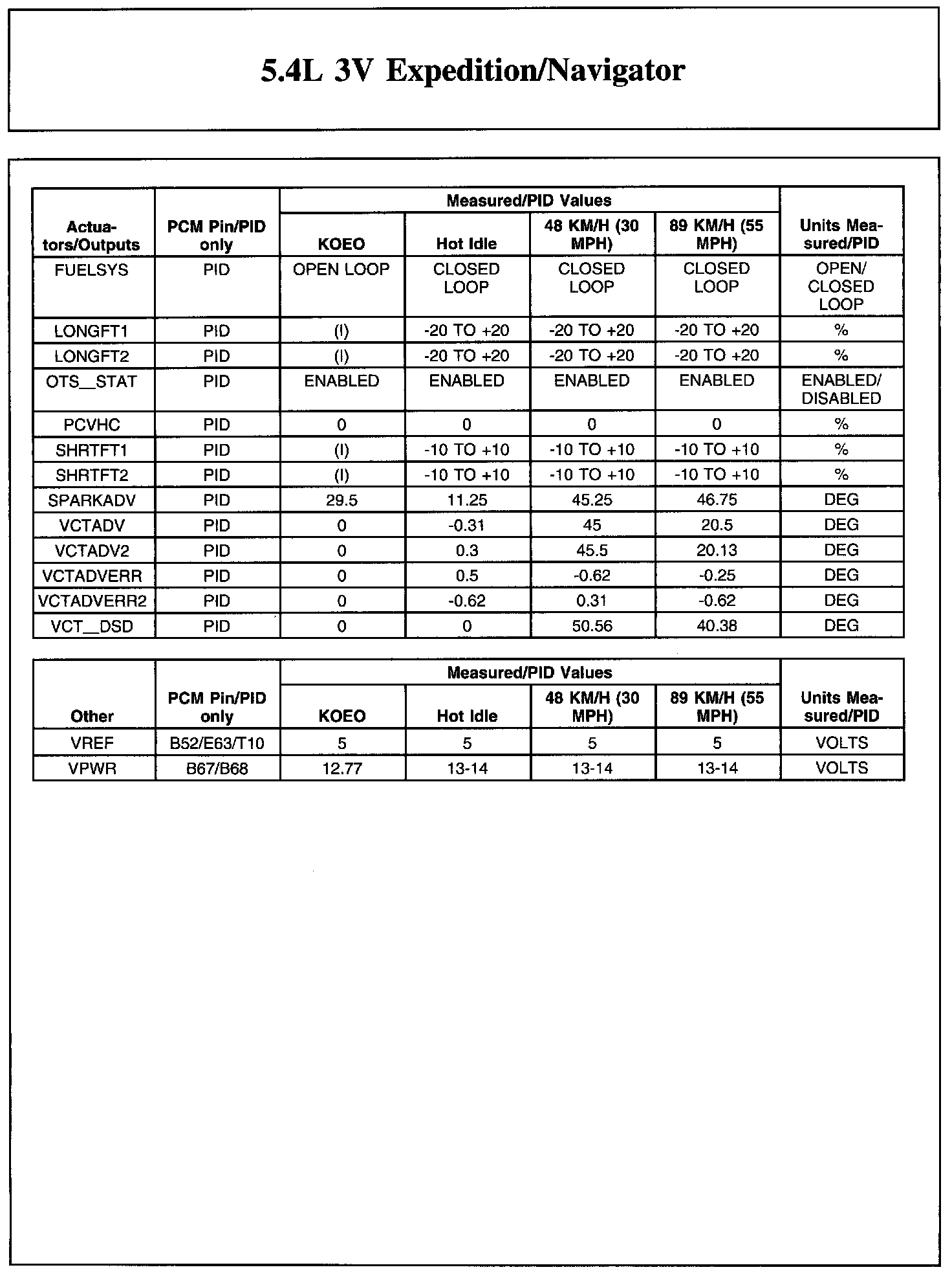 Home >> Lincoln >> 2011 >> Navigator 2WD V8-5.4L >> Repair and Diagnosis >> Powertrain Management >> Computers and Control Systems >> Testing and Inspection >> Scan Tool Testing and Procedures >> Typical Diagnostic Reference Values