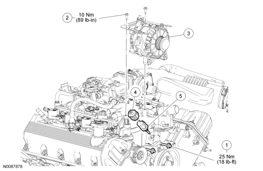 2. Rotate the tensioner clockwise and remove the accessory drive belt from the generator pulley.
