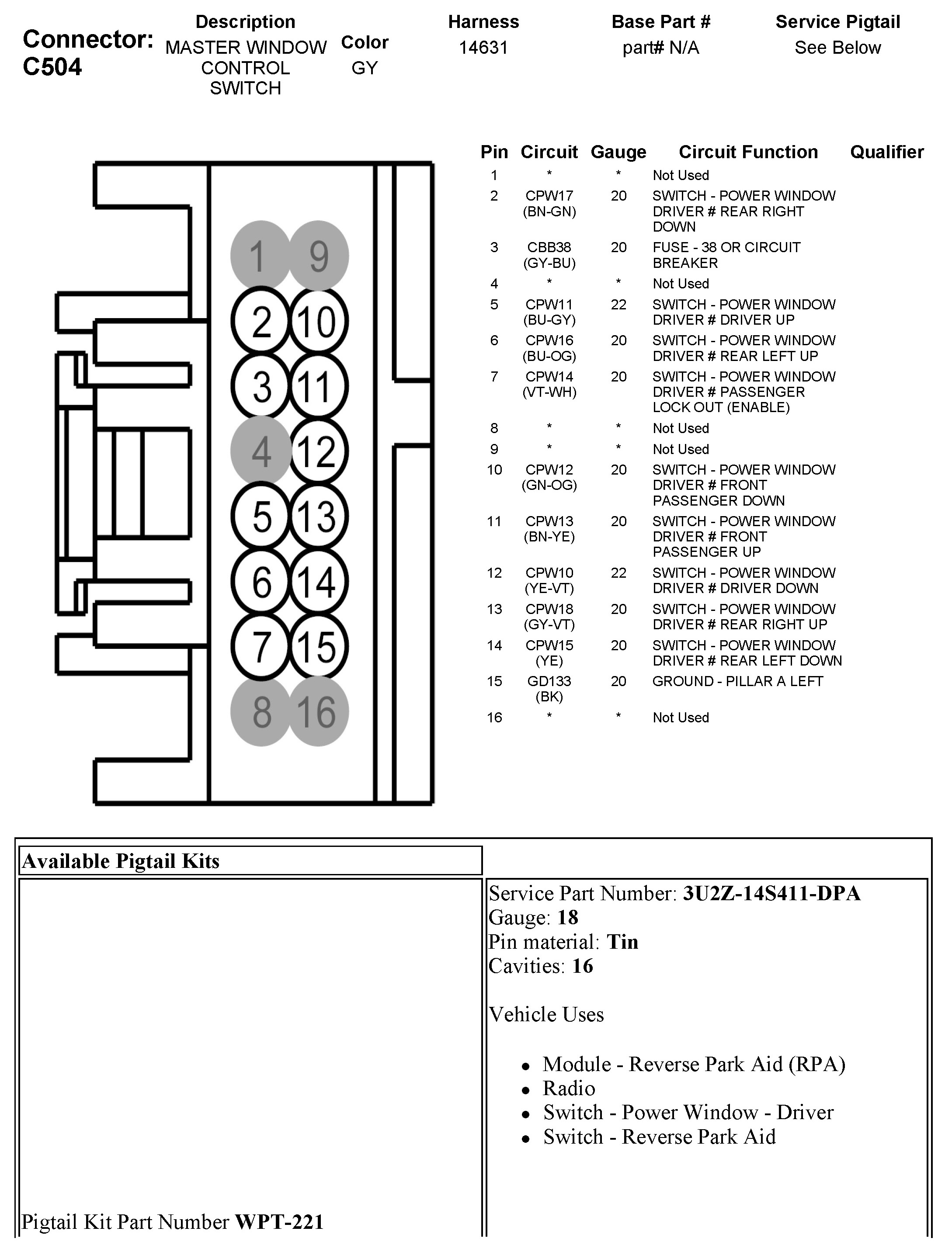 C504 Master Window Control Switch