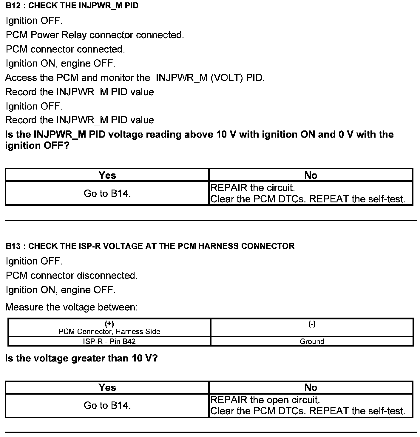 Home >> Lincoln >> 2012 >> MKS AWD V6-3.7L >> Repair and Diagnosis >> Powertrain Management >> Computers and Control Systems >> Testing and Inspection >> Pinpoint Tests >> Test B: Powertrain Control Module (PCM) Power Relay