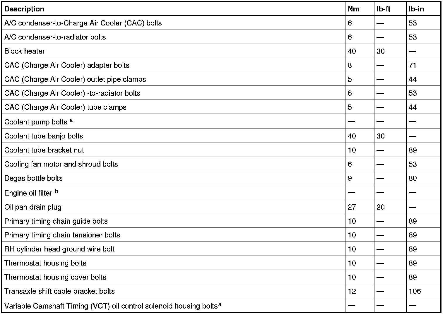 Torque Specifications