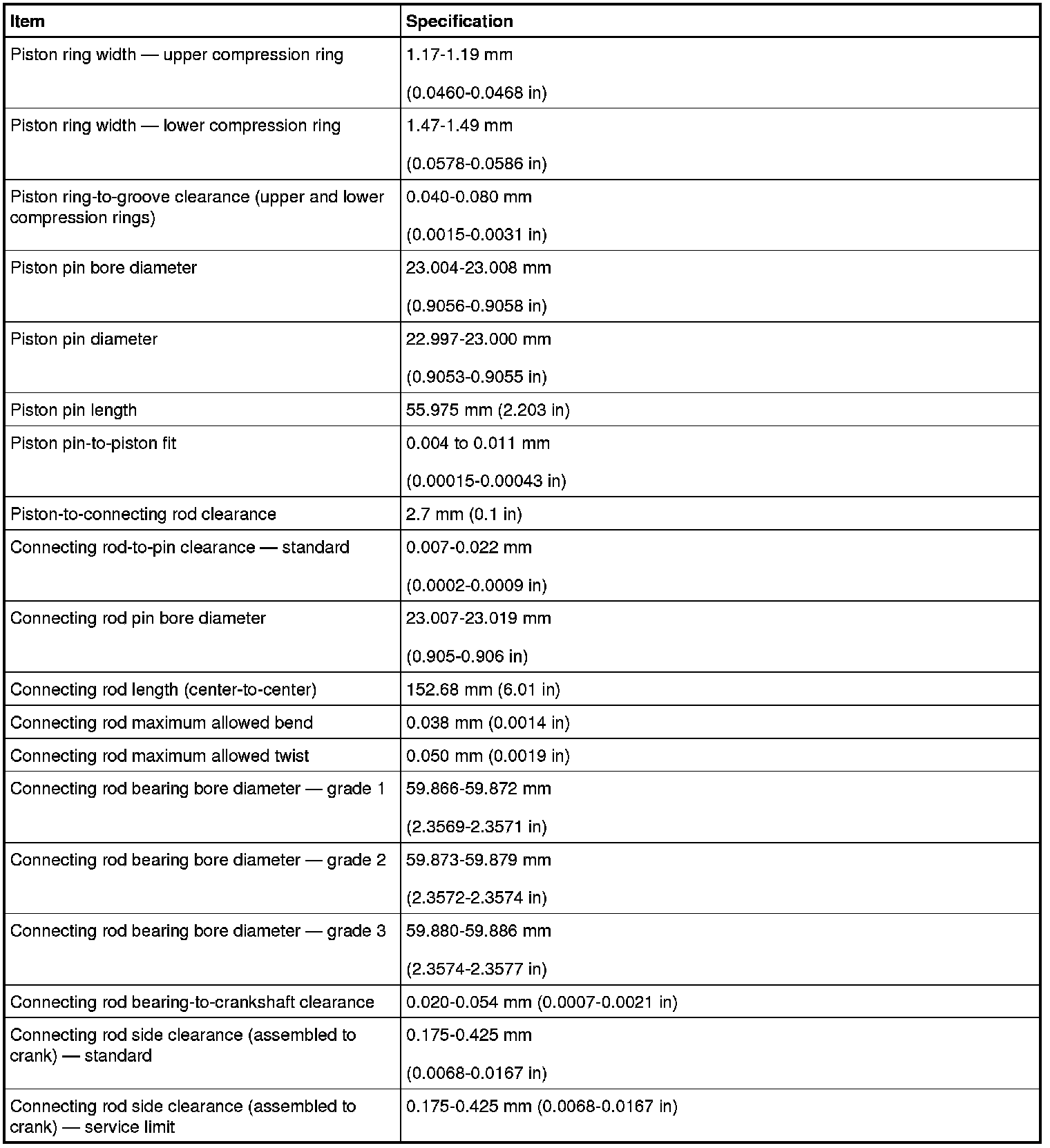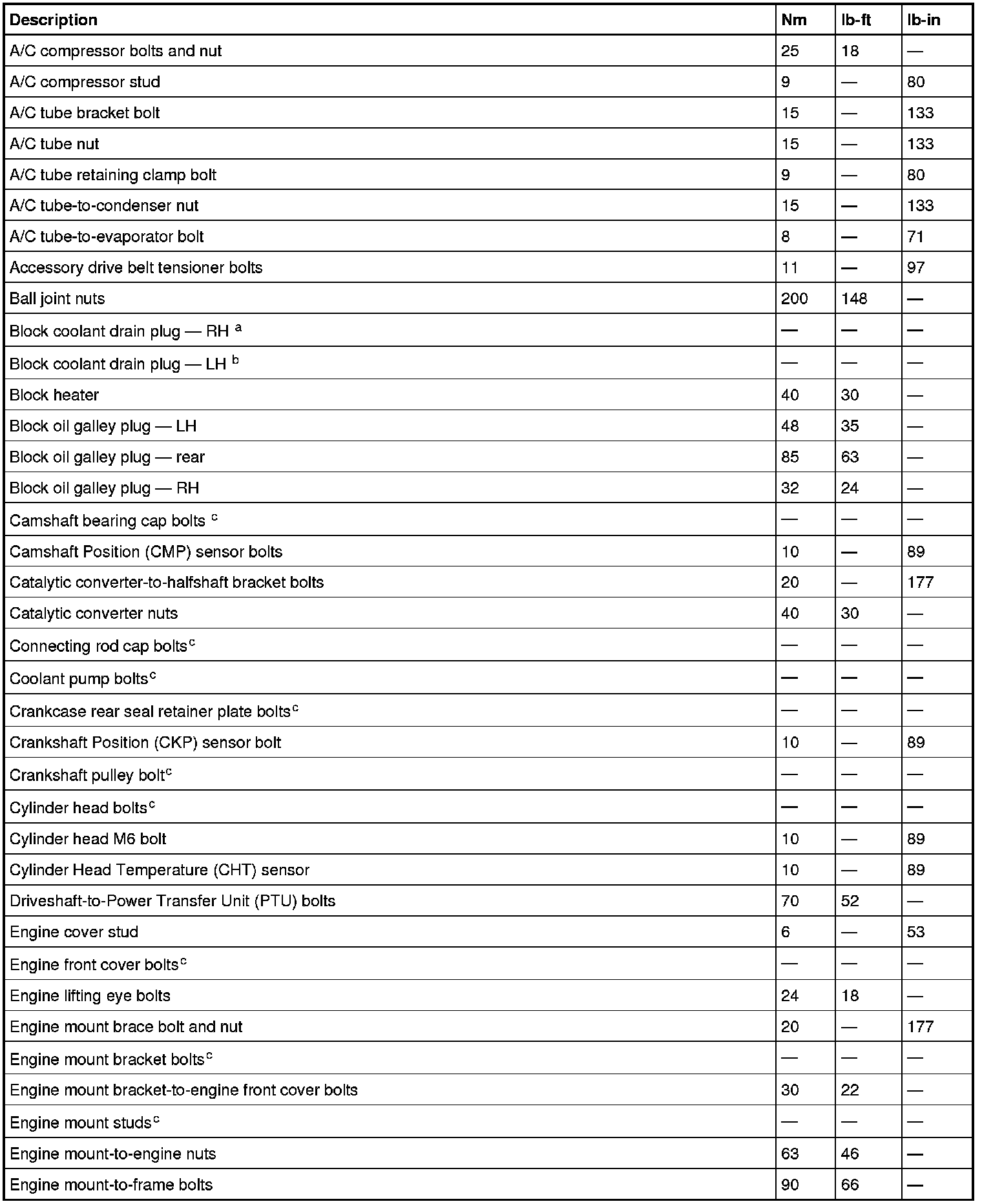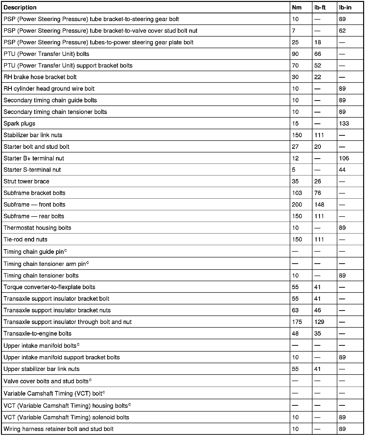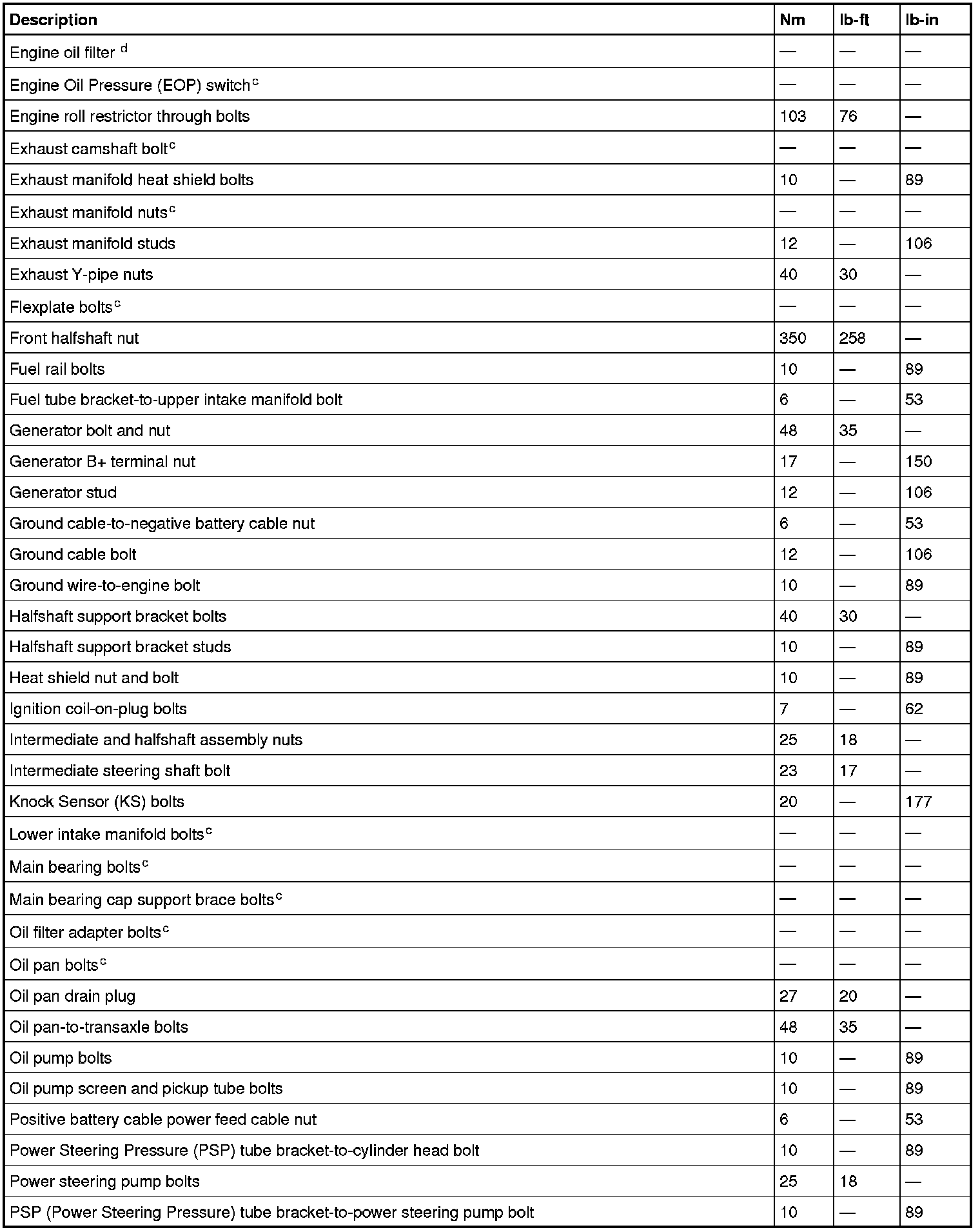 Torque Specifications