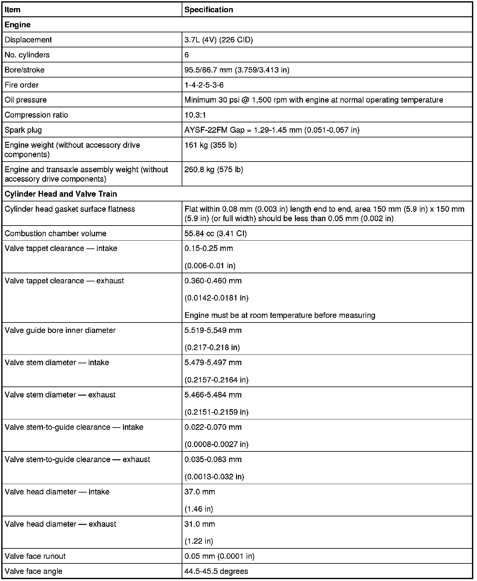 Home >> Lincoln >> 2012 >> MKS AWD V6-3.7L >> Repair and Diagnosis >> Specifications >> Mechanical Specifications >> Engine >> System Specifications
