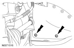 19. Position the RH engine splash shield and install the 2 lower pin-type retainers.