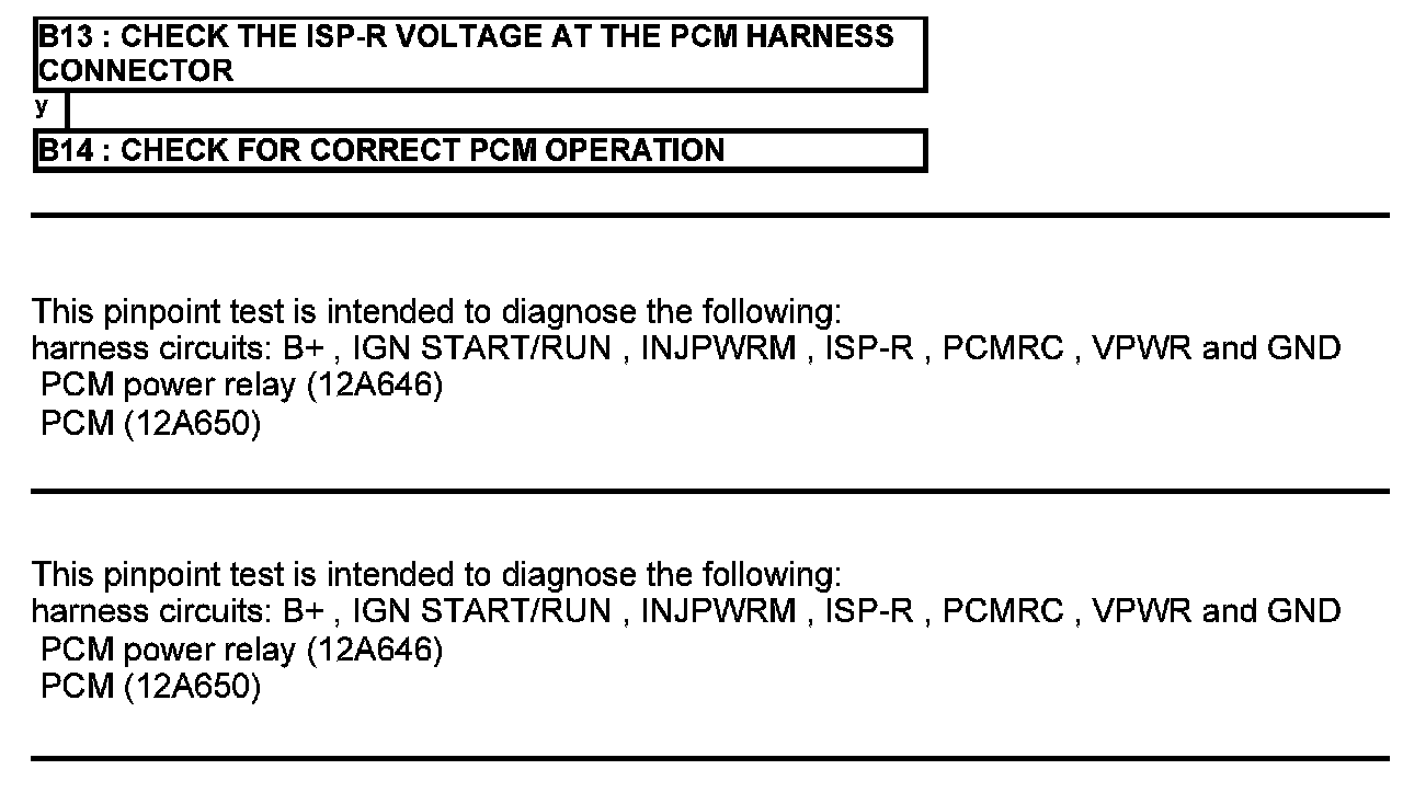 Home >> Lincoln >> 2012 >> MKT AWD V6-3.5L Turbo >> Repair and Diagnosis >> Powertrain Management >> Computers and Control Systems >> Testing and Inspection >> Pinpoint Tests >> Test B: Powertrain Control Module (PCM) Power Relay