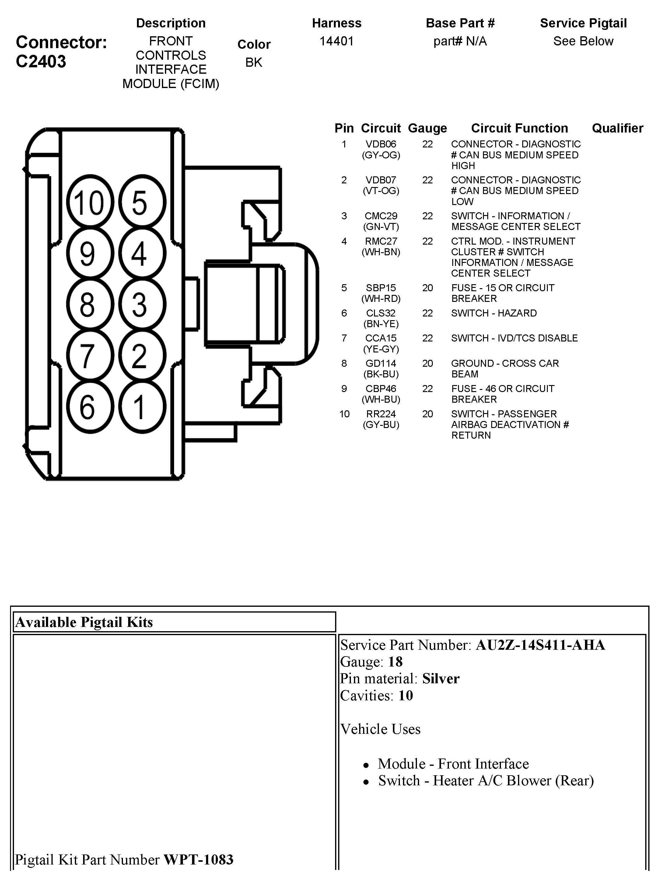 C2403 Front Control Interface Module (FCIM)