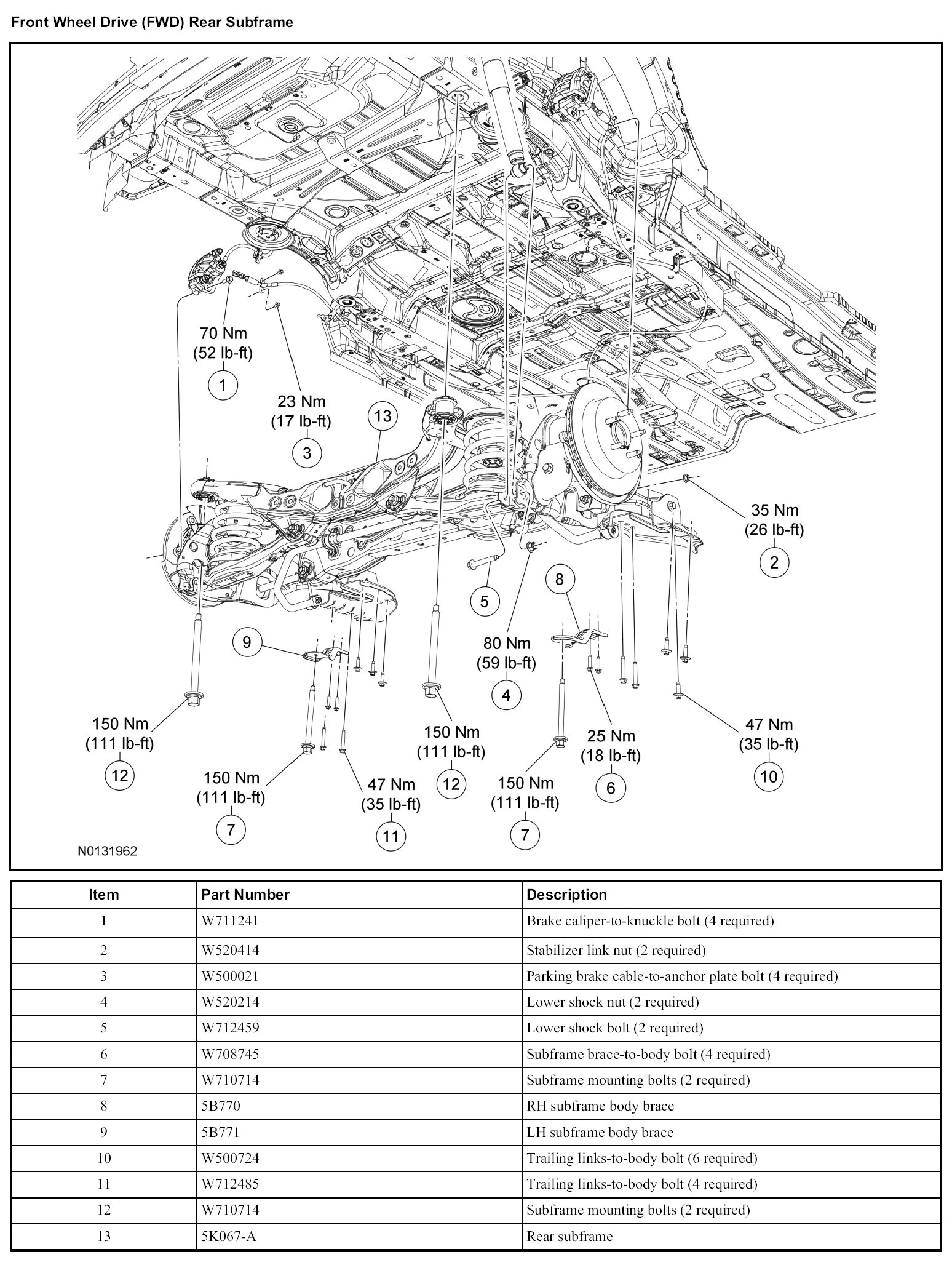 NOTICE: Suspension and subframe fasteners are critical parts because they affect performance of vital parts and systems and their failure may result in major service expense. A new part with the same part number must be installed if installation becomes necessary. Do not use a replacement part of lesser quality or substitute design. Torque values must be used as specified during reassembly to make sure of correct retention of these parts.