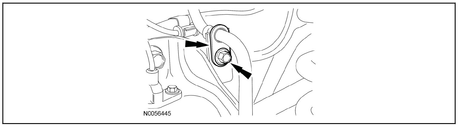 8. Remove the 2 bolts (1 each side) from the brake hose bracket.