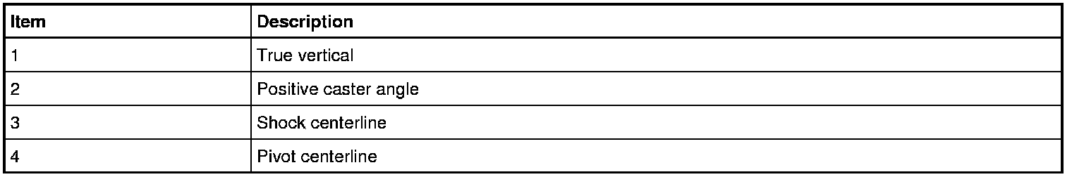 Caster is the deviation from vertical of an imaginary line drawn through the ball joints when viewed from the side. The caster specifications will give the vehicle the best directional stability characteristics when loaded and driven. The caster setting is not related to tire wear.