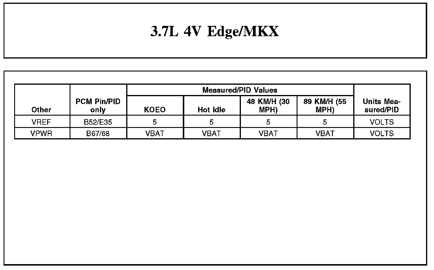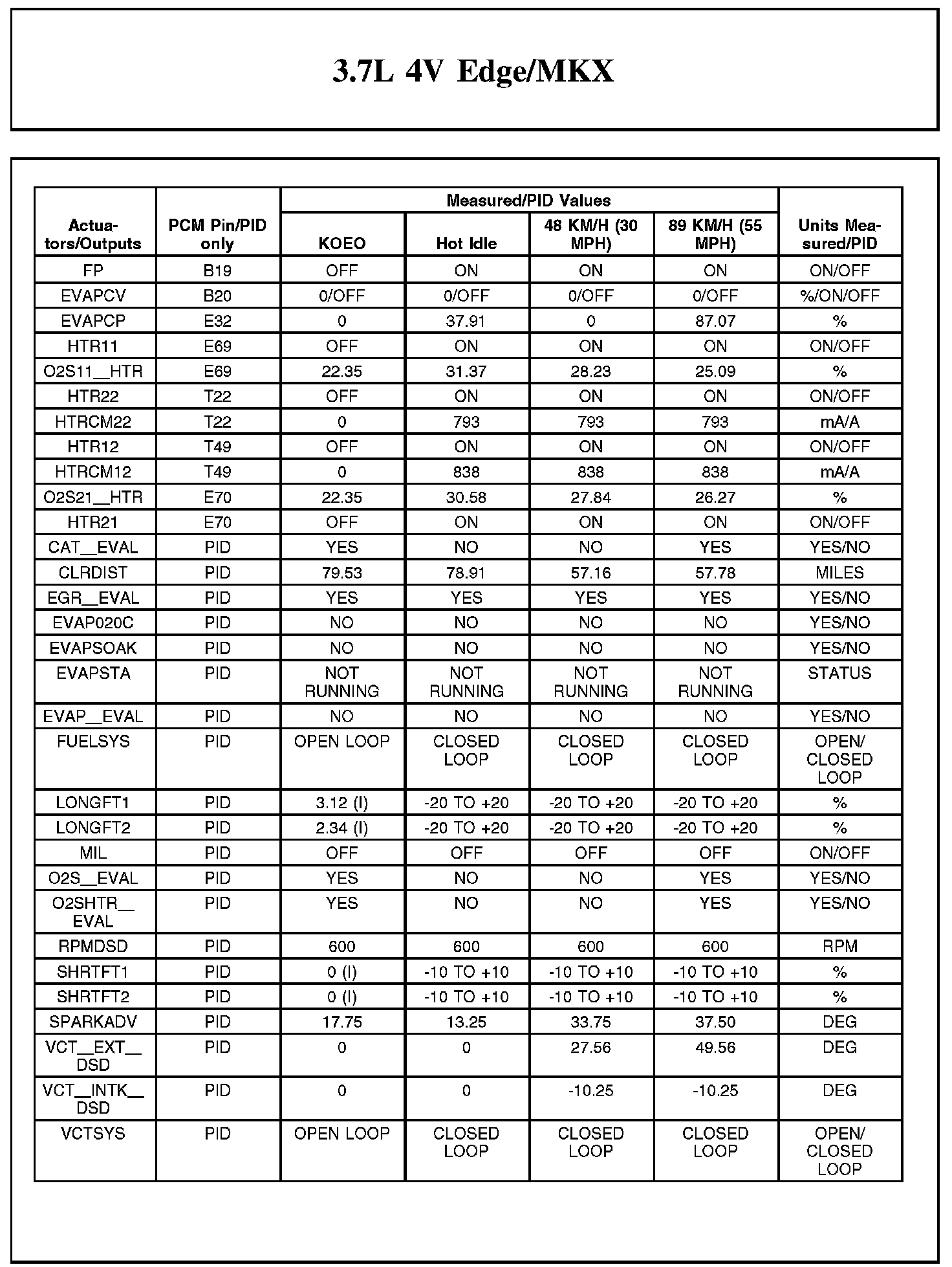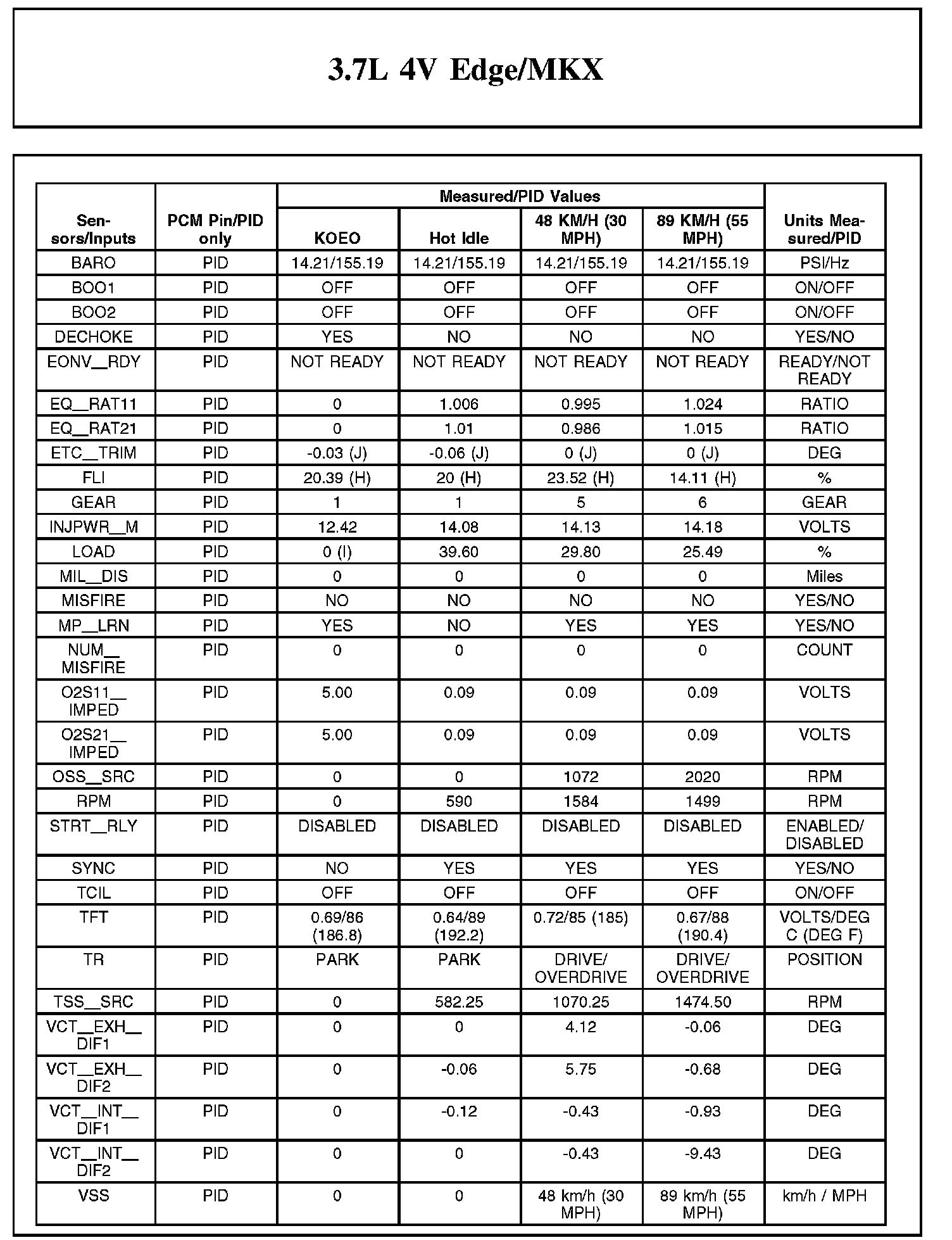 Home >> Lincoln >> 2012 >> MKX FWD V6-3.7L >> Repair and Diagnosis >> Powertrain Management >> Computers and Control Systems >> Testing and Inspection >> Scan Tool Testing and Procedures >> Typical Diagnostic Reference Values