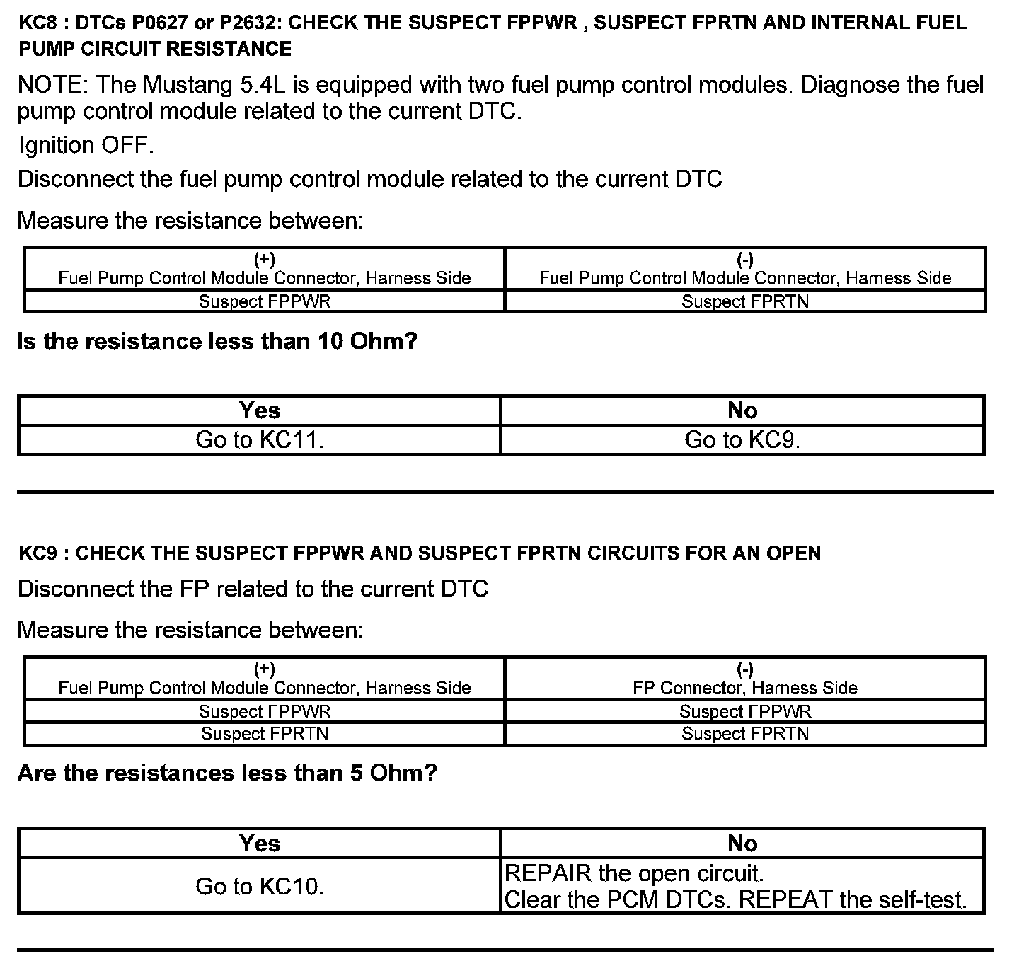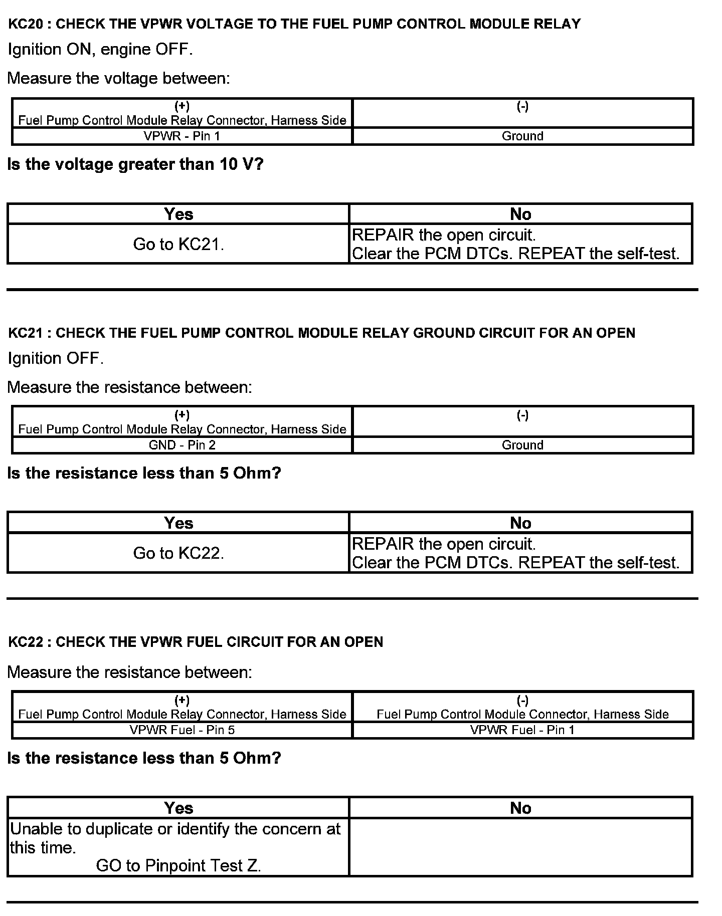 Test KC: Fuel Pump Control Module