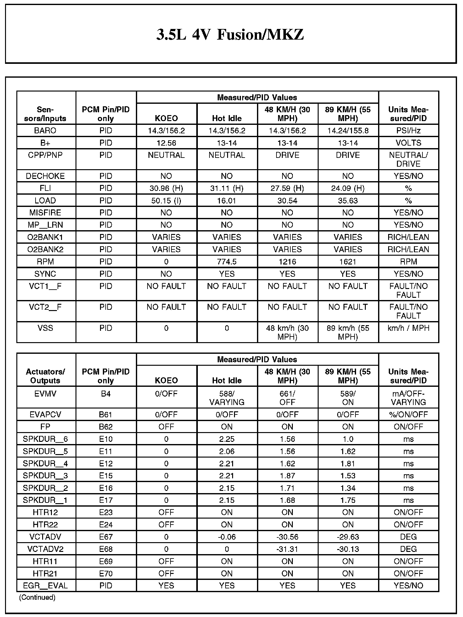 Home >> Lincoln >> 2012 >> MKZ FWD V6-3.5L >> Repair and Diagnosis >> Powertrain Management >> Computers and Control Systems >> Testing and Inspection >> Scan Tool Testing and Procedures >> Typical Diagnostic Reference Values