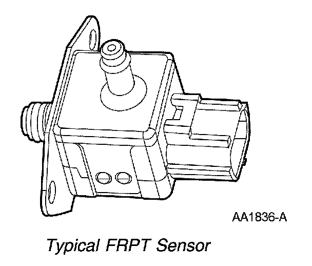 The FRPT sensor measures the pressure and temperature of the fuel in the fuel rail and sends these signals to the PCM. The sensor uses the intake manifold vacuum as a reference to determine the pressure difference between the fuel rail and the intake manifold. The relationship between fuel pressure and fuel temperature is used to determine the possible presence of fuel vapor in the fuel rail.
