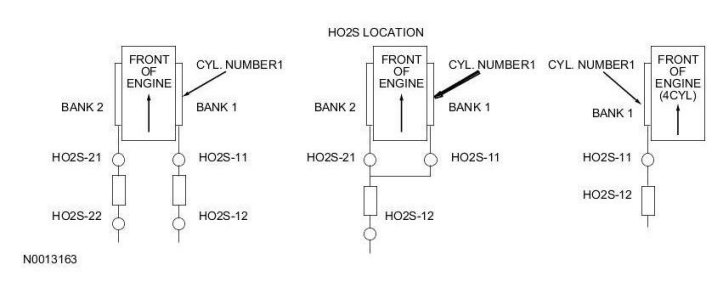 Heated Oxygen Sensor-Front (HO2S-Front) Connector - The pin numbering for the connector is in reference to the connector lock tab. Not all connector key combinations are shown.