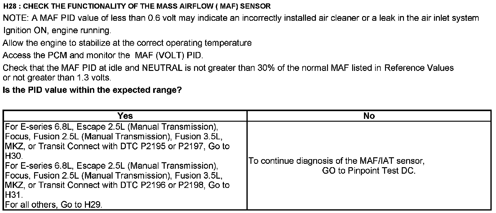 Home >> Lincoln >> 2012 >> Navigator 2WD V8-5.4L >> Repair and Diagnosis >> Powertrain Management >> Computers and Control Systems >> Testing and Inspection >> Pinpoint Tests >> Test H: Fuel Control