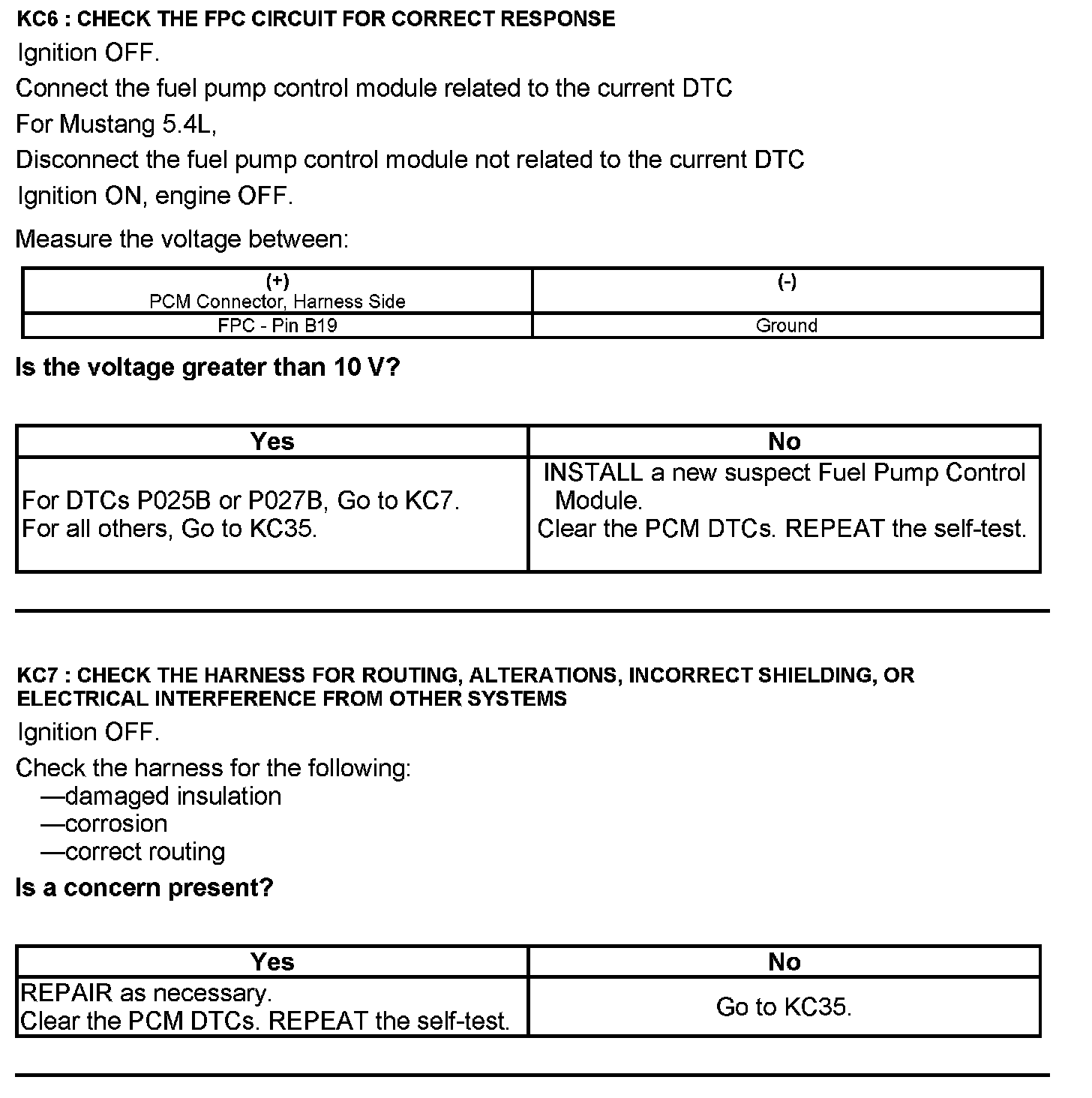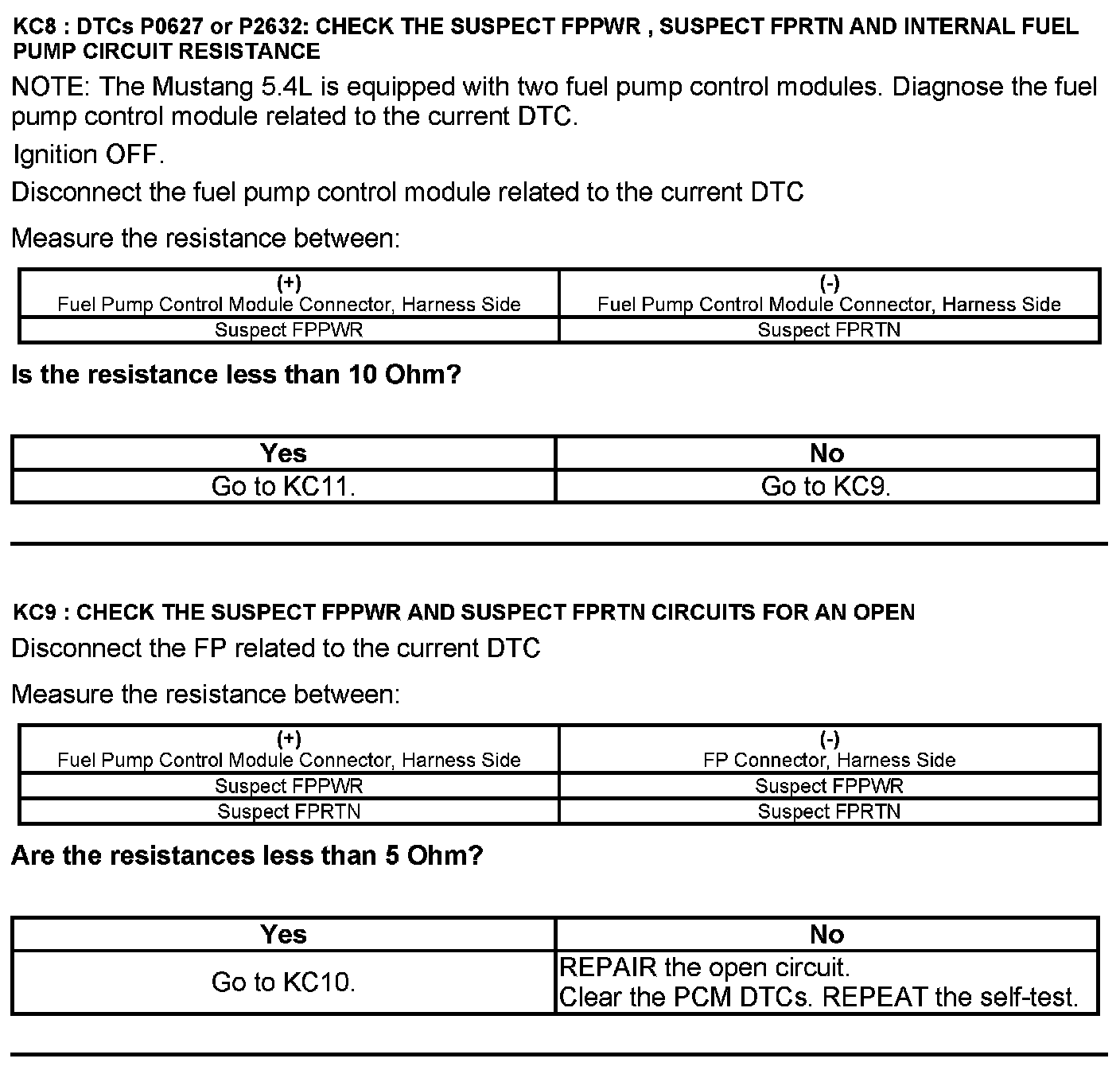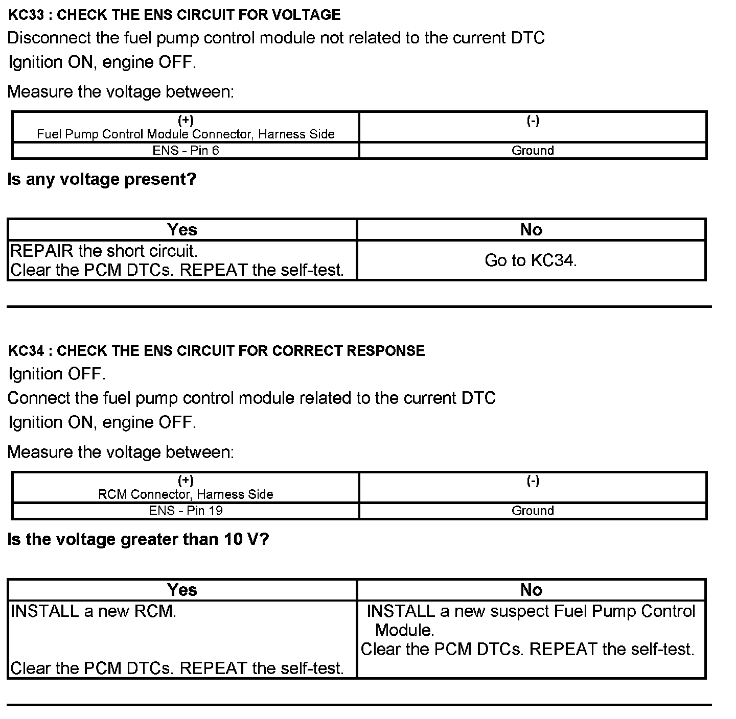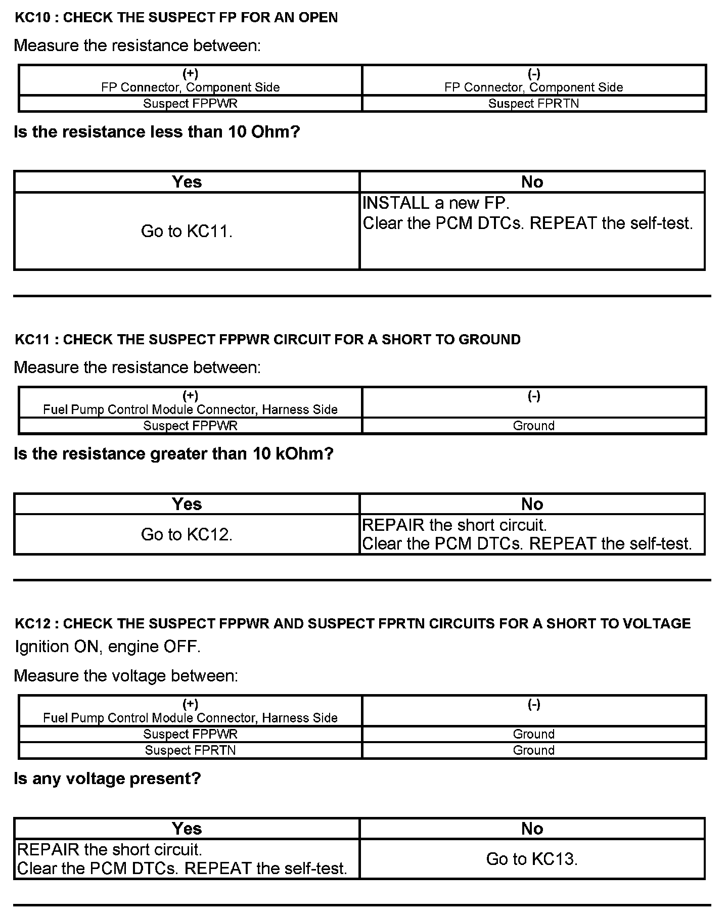 Test KC: Fuel Pump Control Module