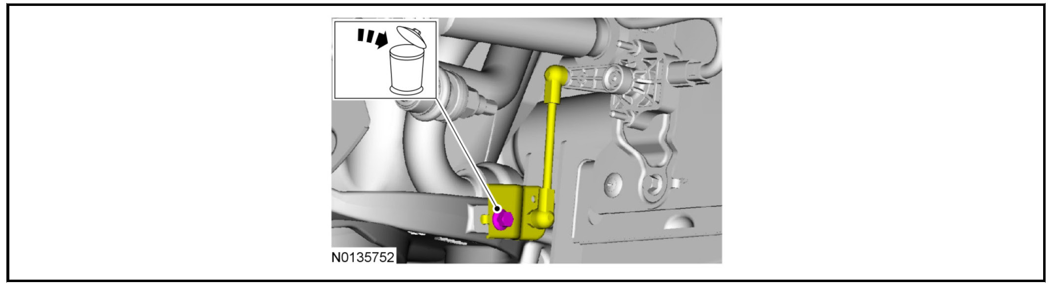 19. Using a wax pencil (or equivalent) apply witness marks to the vehicle and subframe to aid in installation.