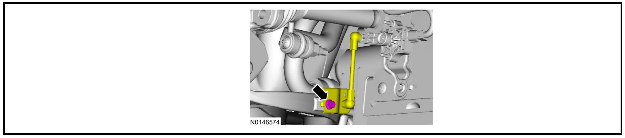 Remove the LH and RH height sensor arm bracket-to-lower control arm bolts and position the brackets aside. Discard the specified component. Follow local disposal regulations.
