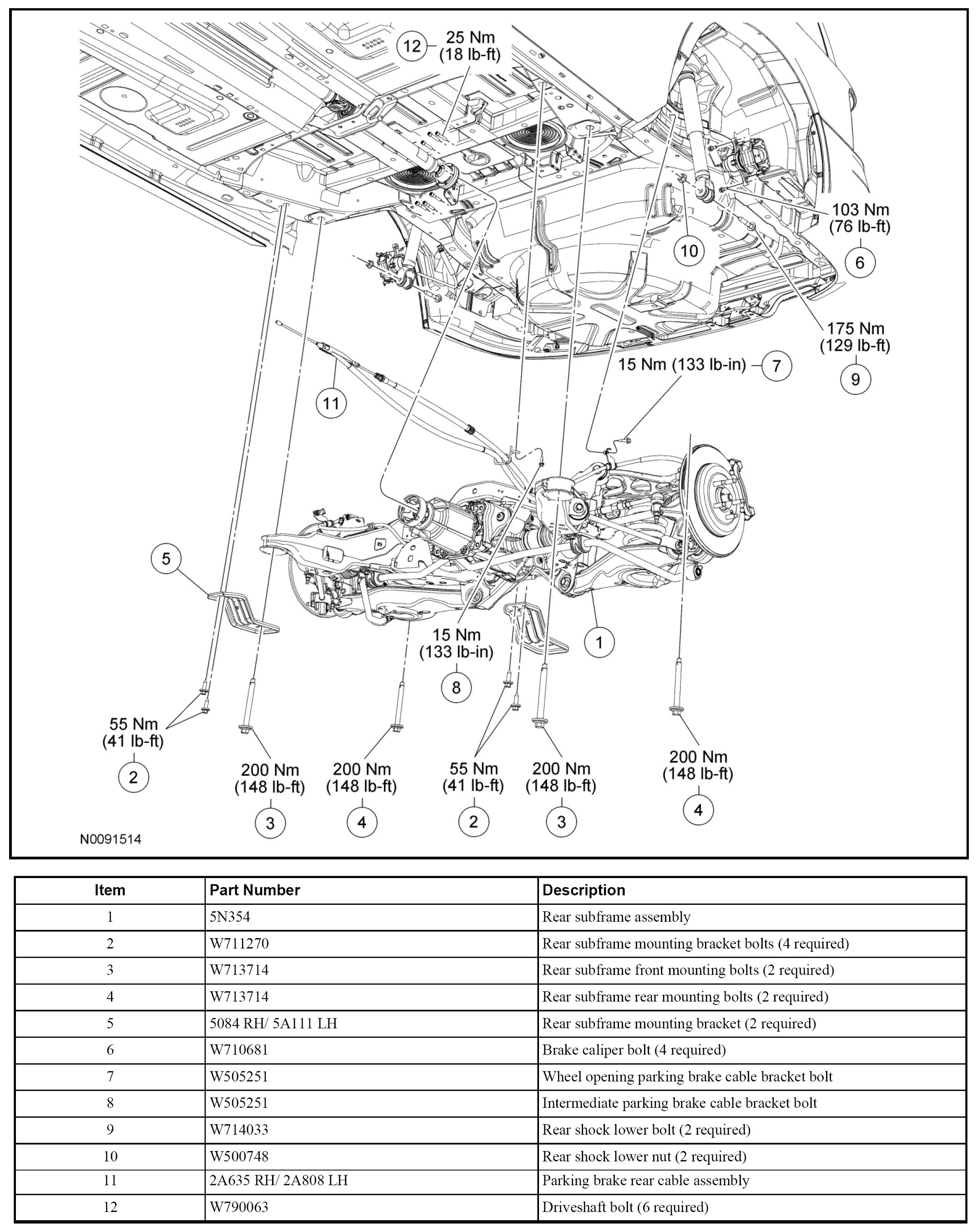 19. NOTE: When positioning the lifting table, be sure to support the rear subframe on the subframe rails. Do not lift on the rear differential or rear control arms, damage may occur.