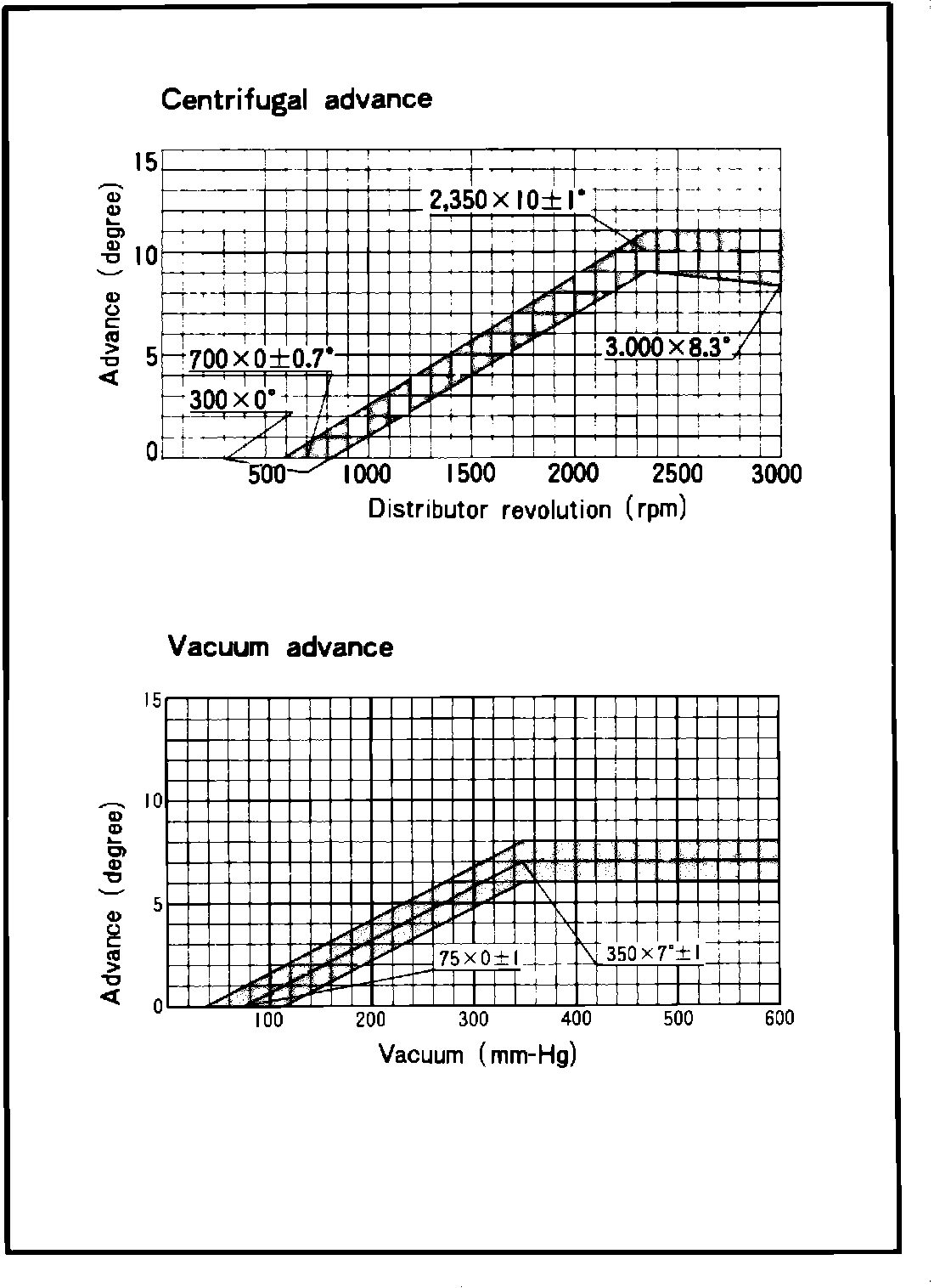 4. When the vacuum is further increased, the relation between the vacuum and advance should be kept within range Fig. 9.