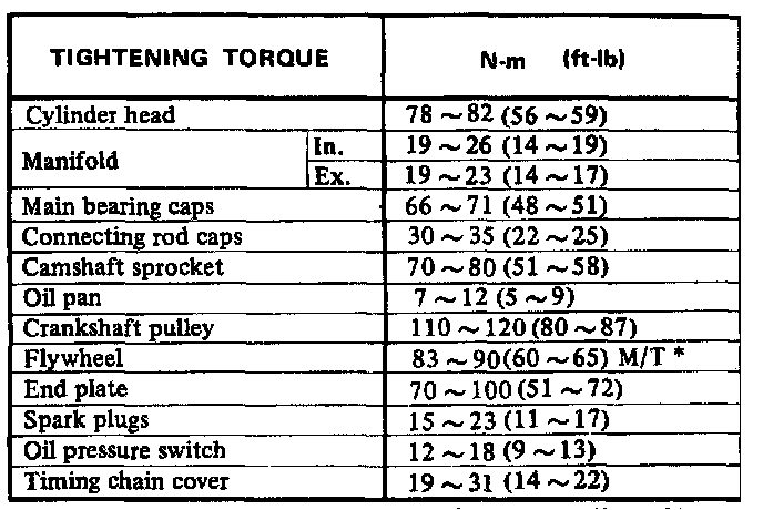 Torque Chart:
