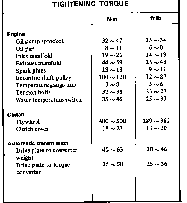 Engine Torque Specifications: