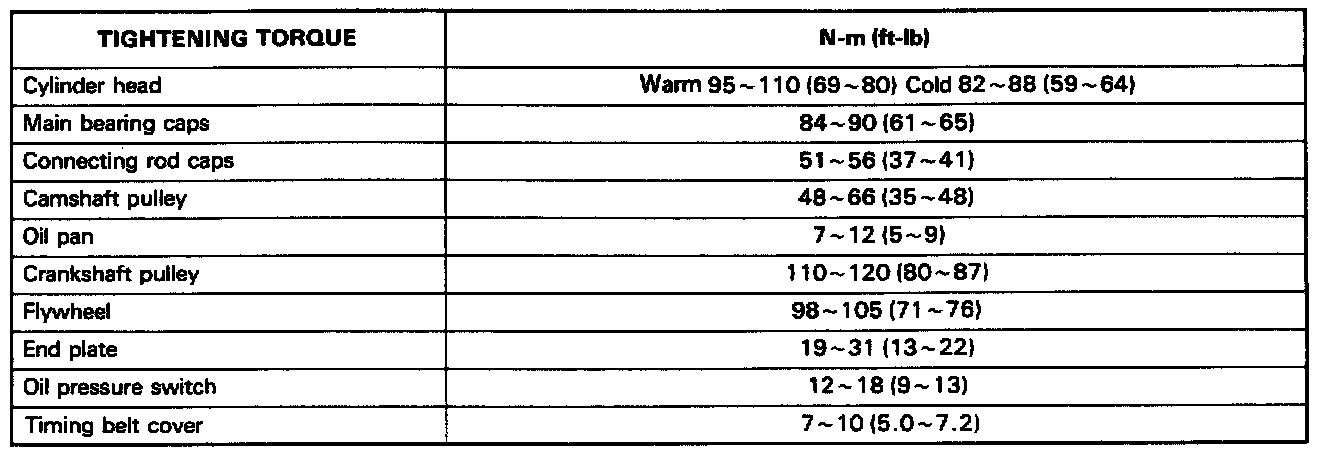 Torque Chart:
