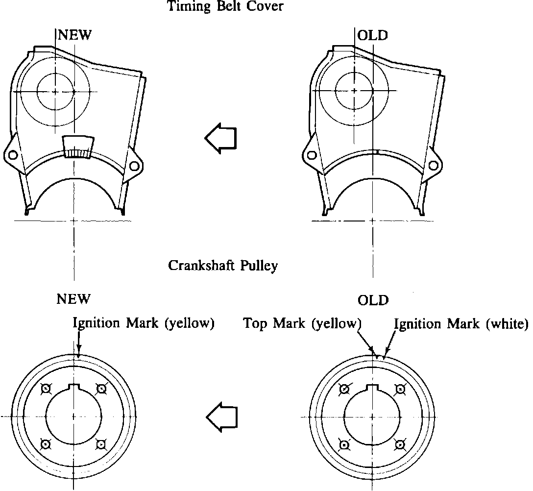 Note: If the new timing belt cover or crankshaft pulley is installed onto the vehicles produced prior to this modification, please use the following procedures.