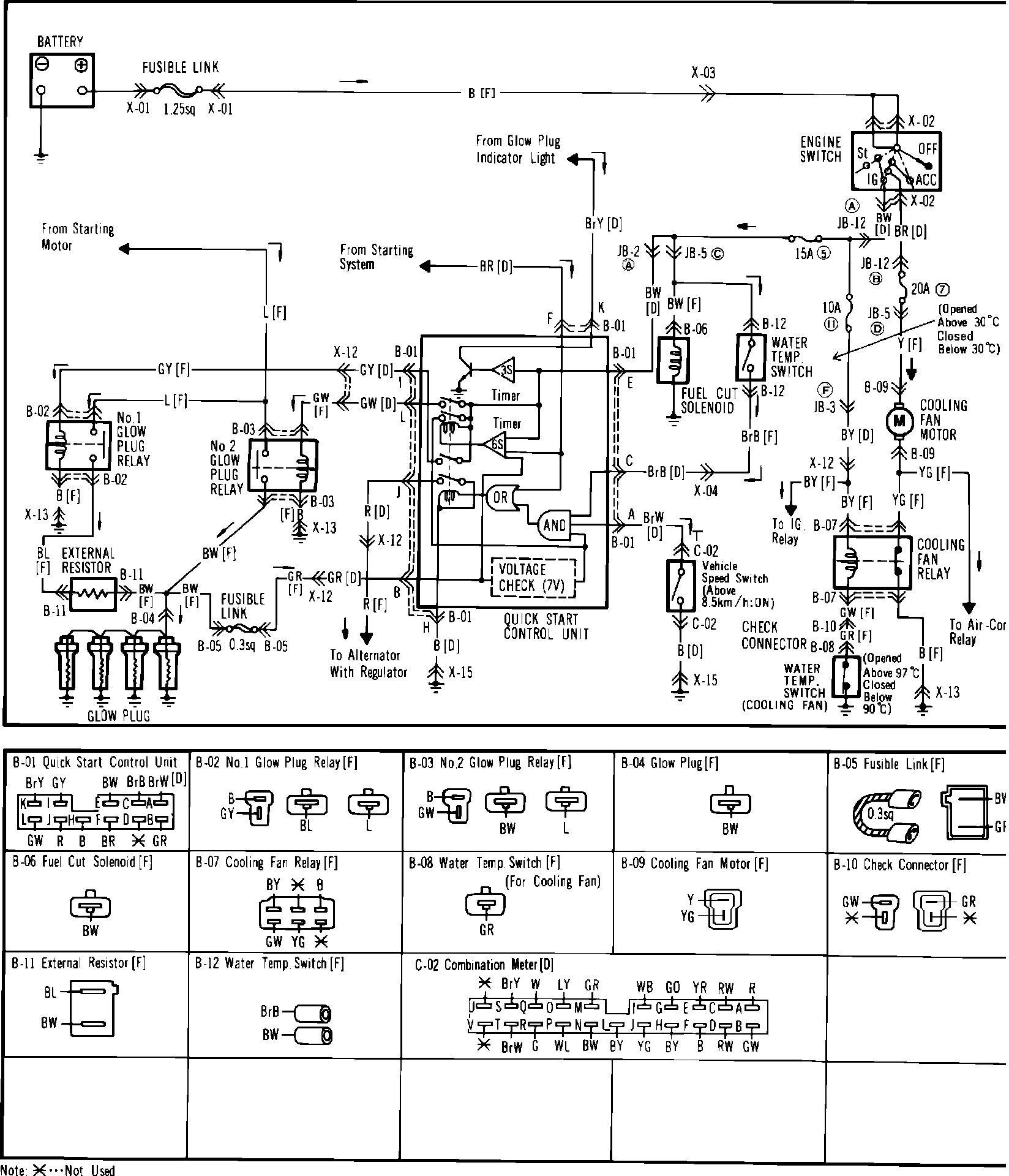 =� Fig. 55b Cooling Fan, Fuel Cut Solenoid & Quick Start System Wiring Circuit. W/Diesel Engine: