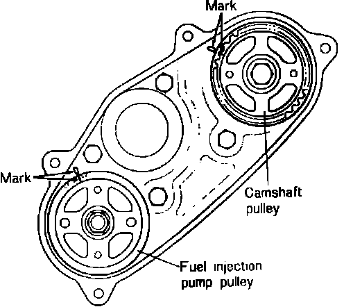 Fig. 29 Aligning rear camshaft sprocket mark w/rear seal plate mark: