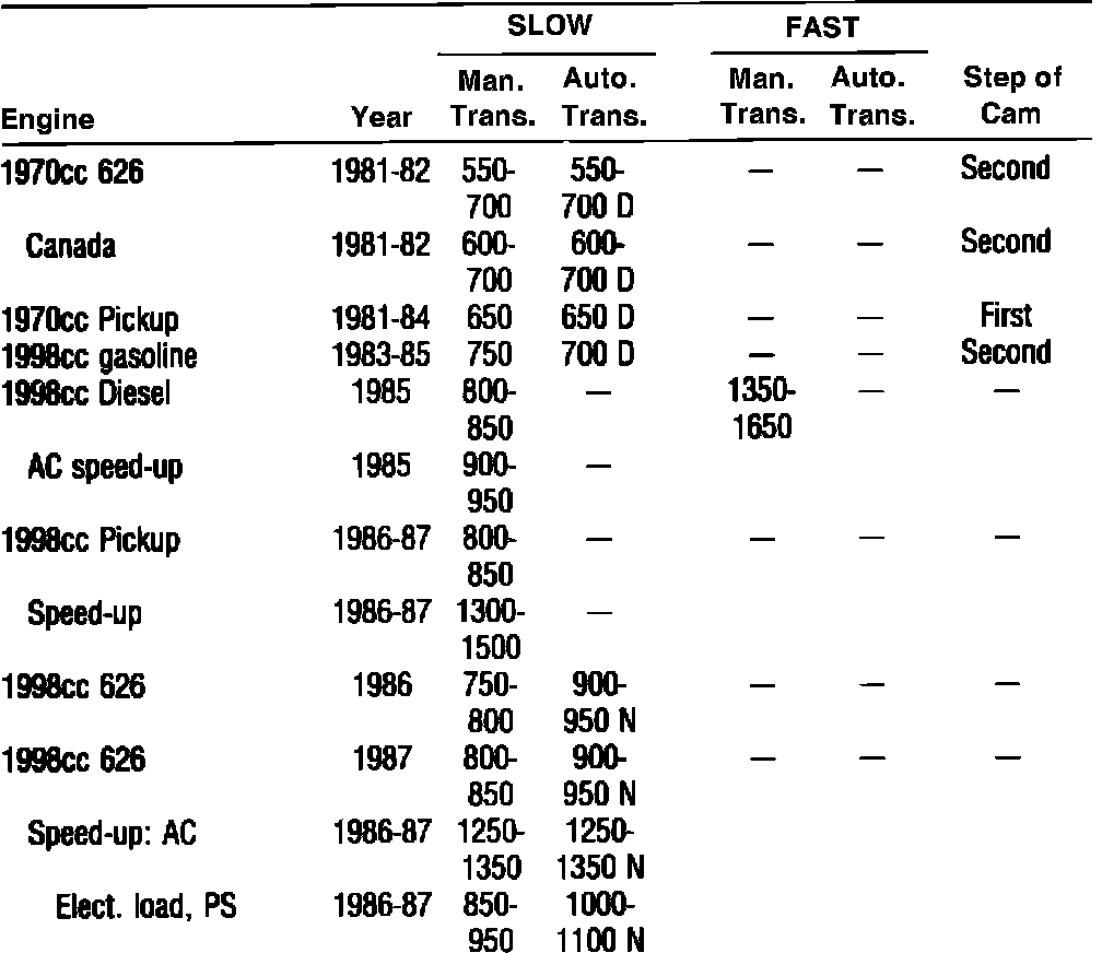 Fig. 5 Idle Speed W/O Computer Control - Specifications: