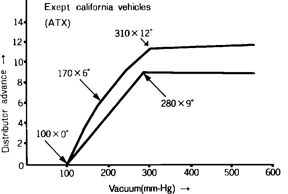 Fig. 60 Vacuum advance chart ATX (non-Calif.).:
