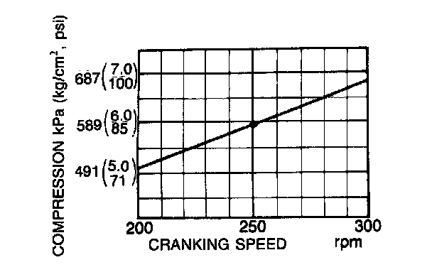 8. Record the compression of the three combustion chambers and cranking speed.