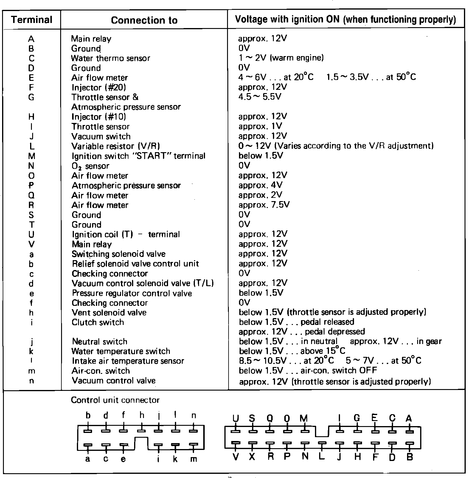 Fig. 55 Control unit voltage specifications chart.: