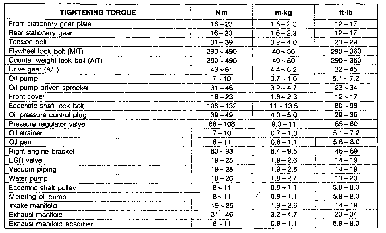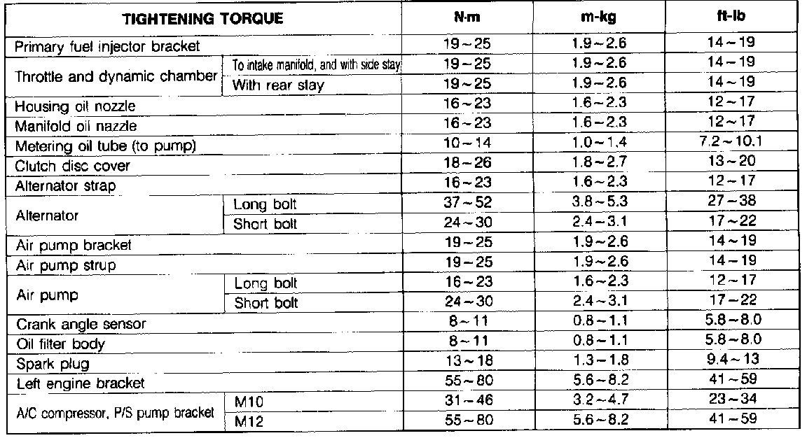 Torque Specifications