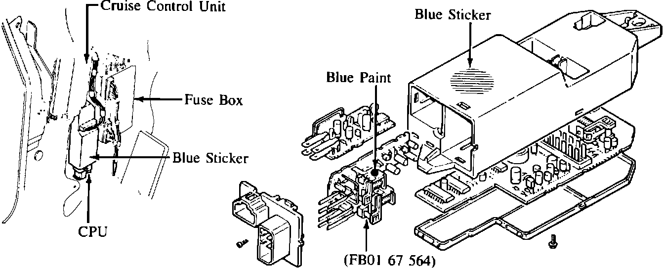 The part numbers remain the same. However, the modified CPU can be identified by a blue sticker on the outside of the box.. The modified printed circuit board can be identified by a mark of blue paint.