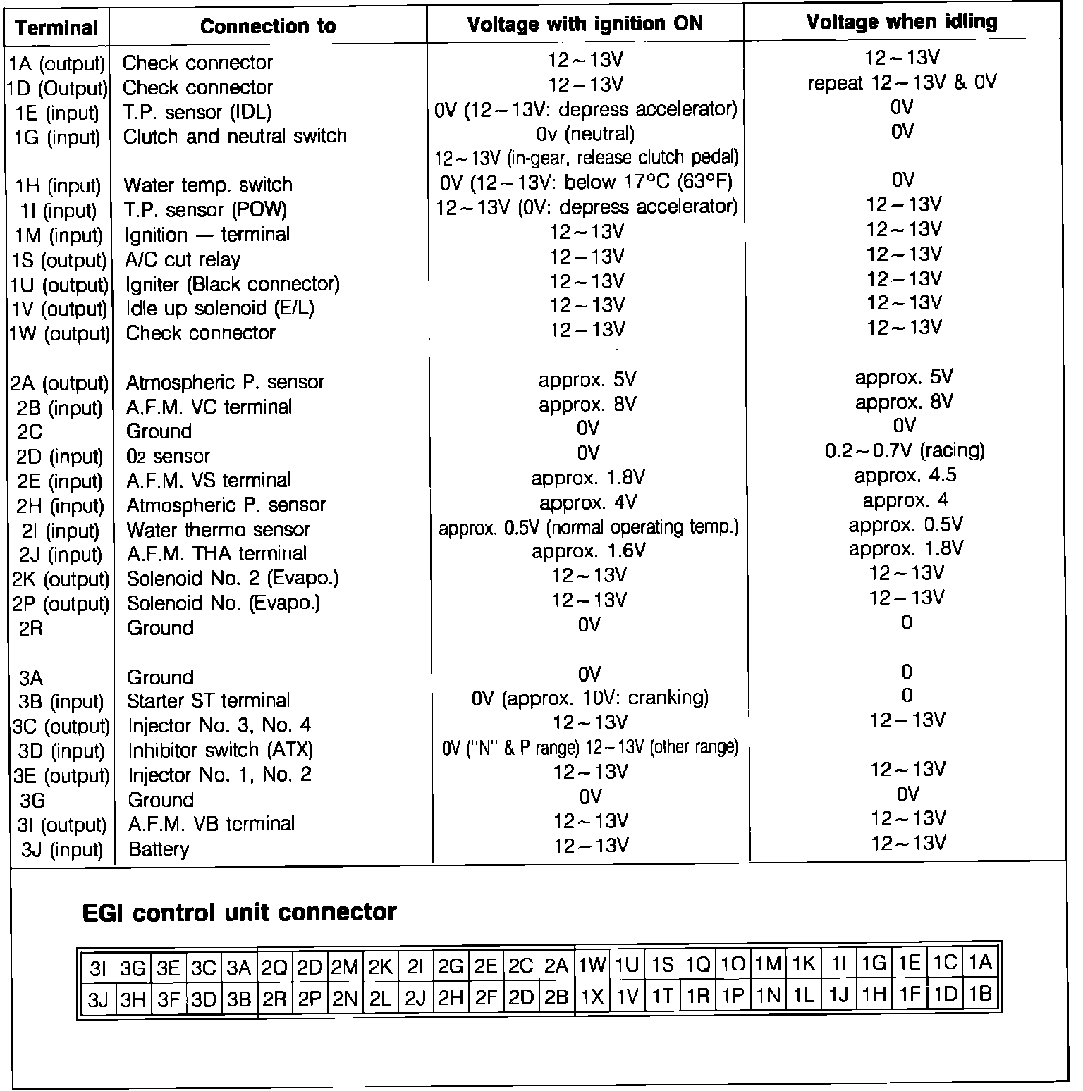 Fig. 62 Control unit voltage specifications chart.: