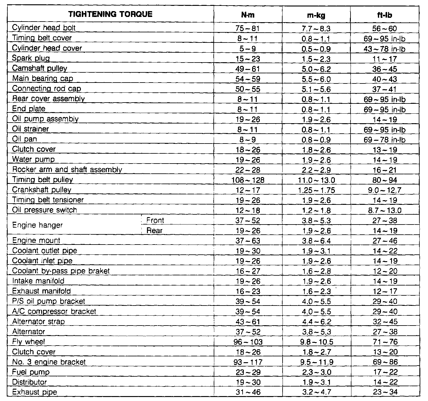 Torque Chart: