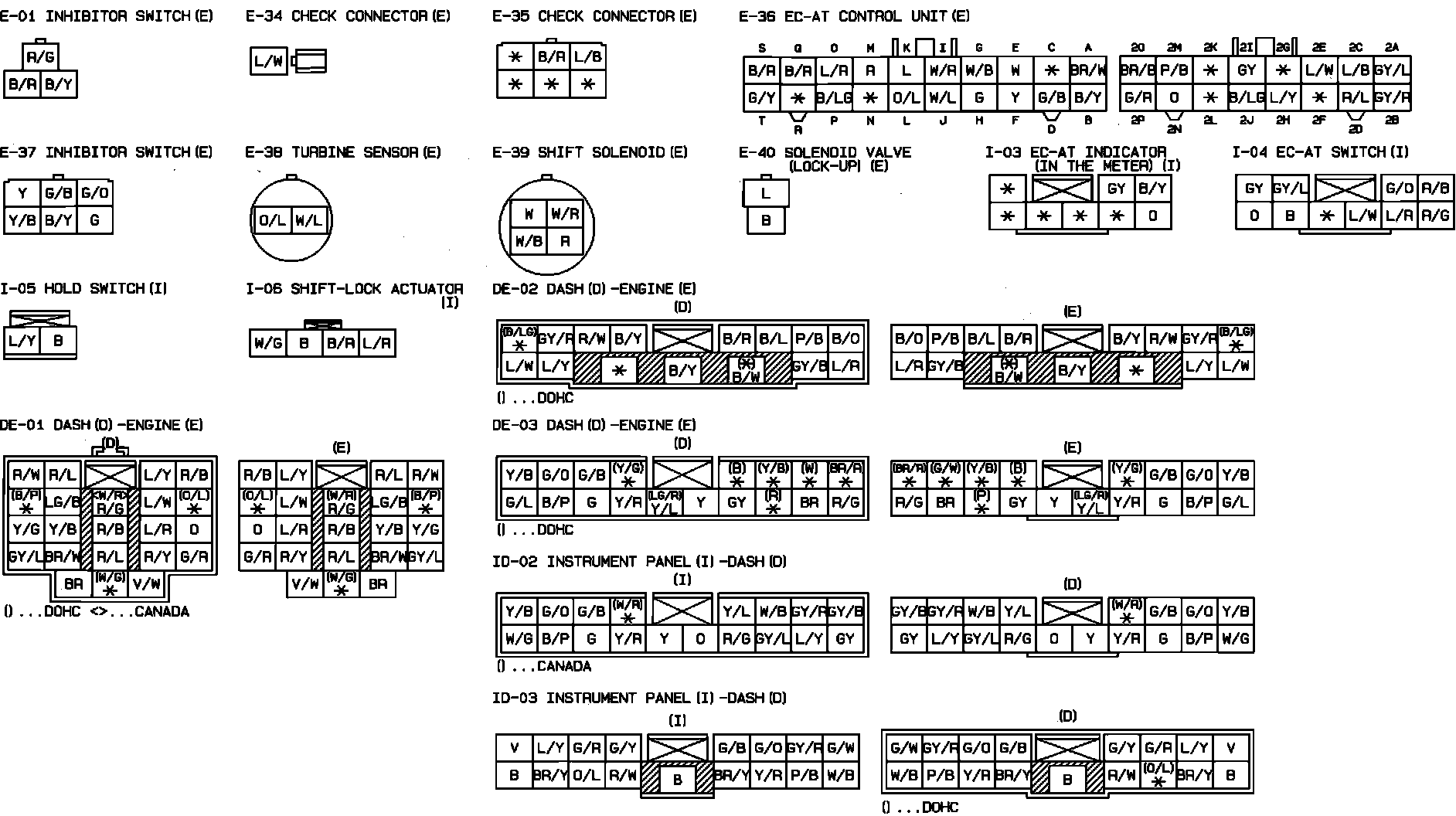 Automatic Transmission Control Unit & Shift Lock System. DOHC. Connector Identification: