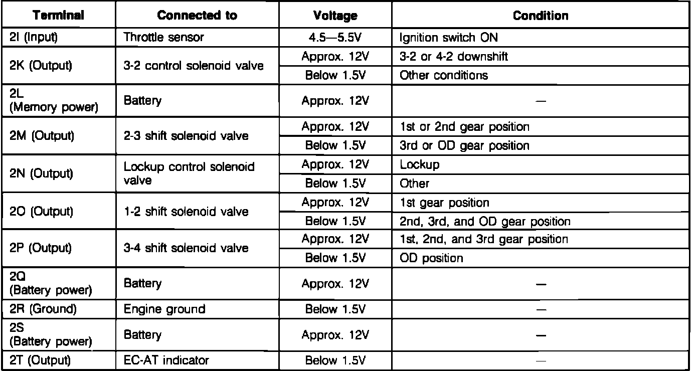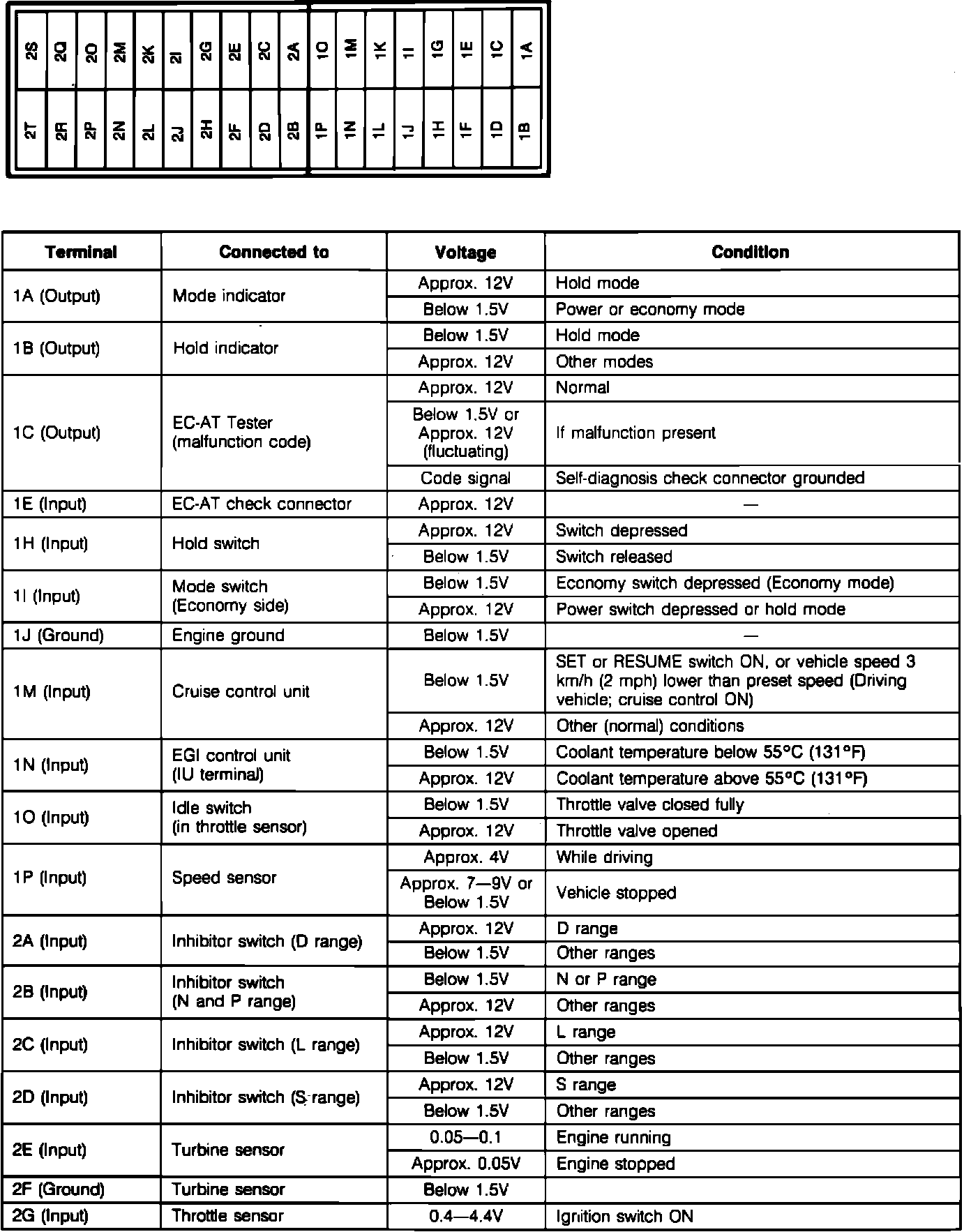 EC-AT Control Unit Terminal Voltage Chart (Part 1):