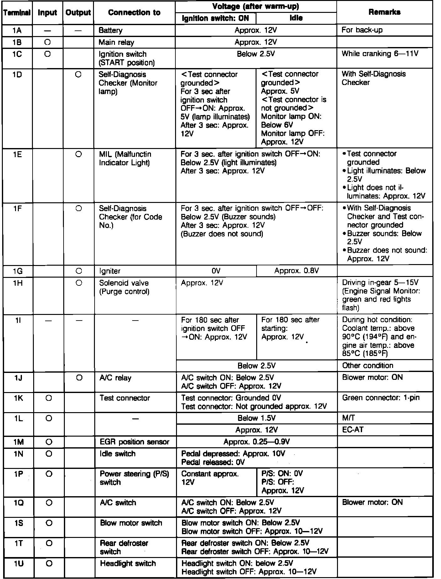 ECU Pin Voltage Chart (Part 1):
