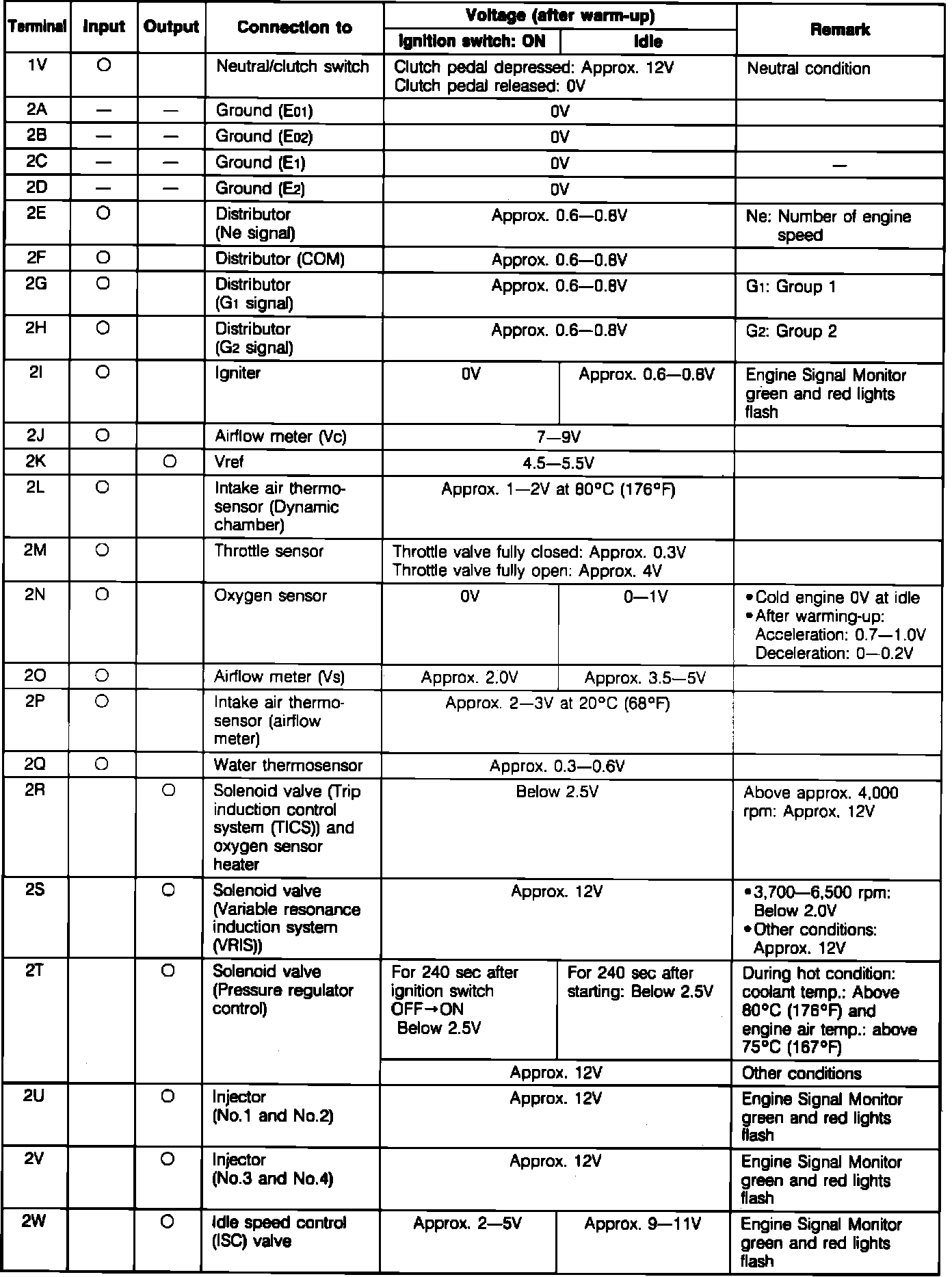 ECU Pin Voltage Chart (Part 2):