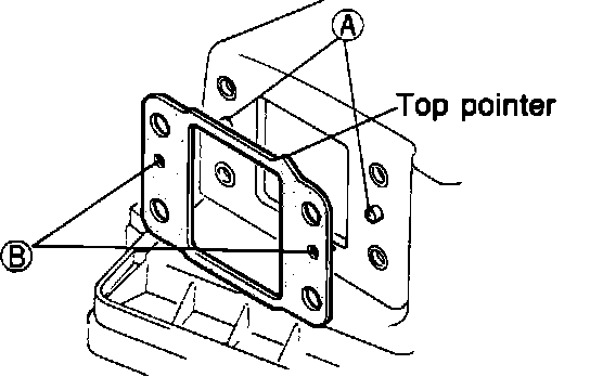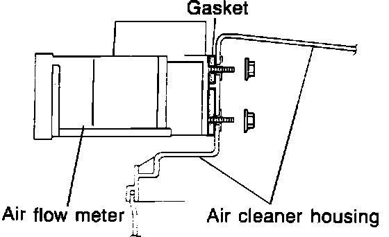 6. Install a new gasket, making sure that the pins "A" fit into the holes "B". Install the air flow meter to the air filter housing, torquing the nuts to 8-11 Nm (0.8-1.1 m-0kg, 5.8-8.0 ft. lbs.)
