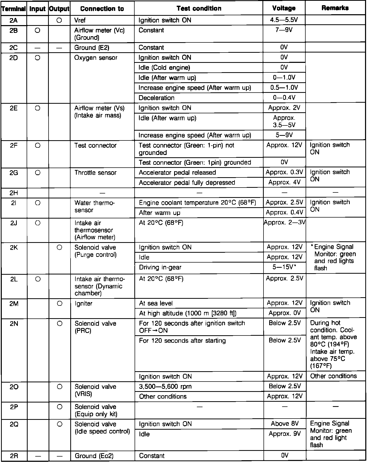2. Before replacing an ECU, check components, wiring harnesses and terminal contacts if terminal voltage readings are incorrect. Repair as needed and recheck voltage readings.