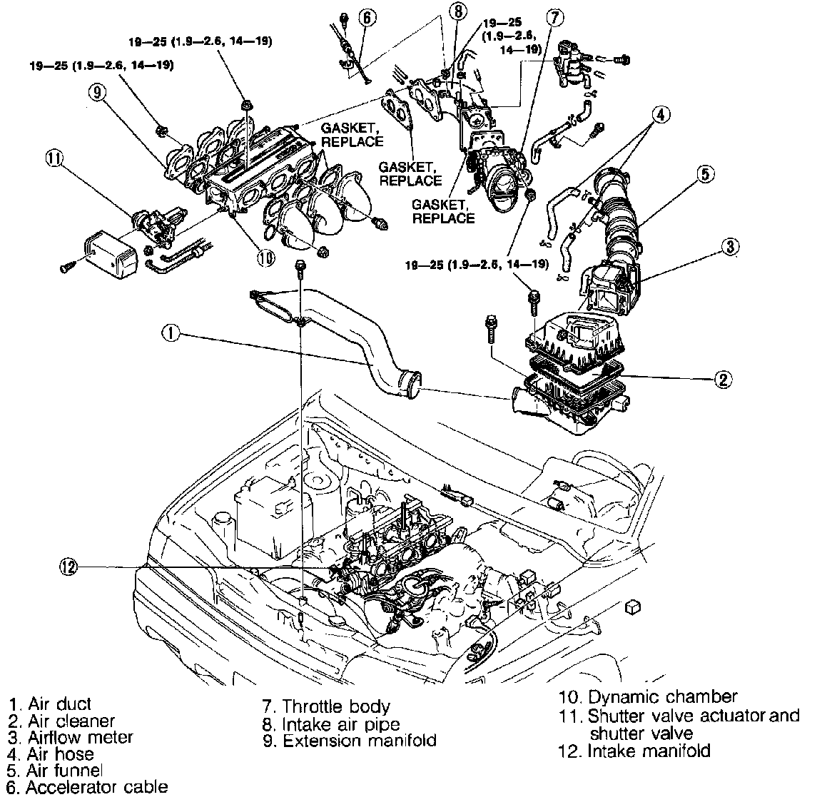 Home >> Mazda >> 1990 >> MPV 2WD V6-3.0L SOHC >> Repair and Diagnosis >> Specifications >> Mechanical Specifications >> Engine >> System Specifications >> Torque Specifications