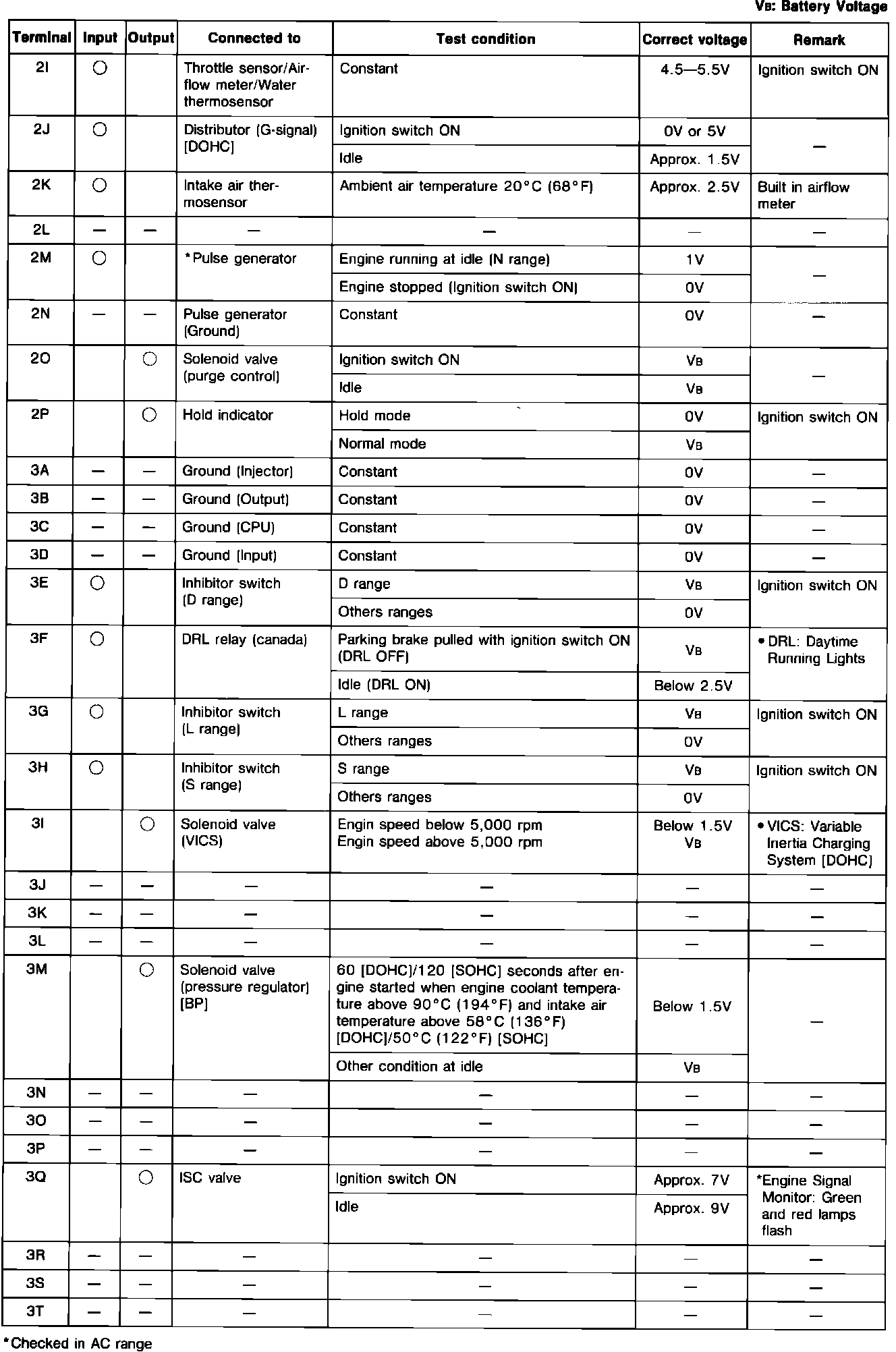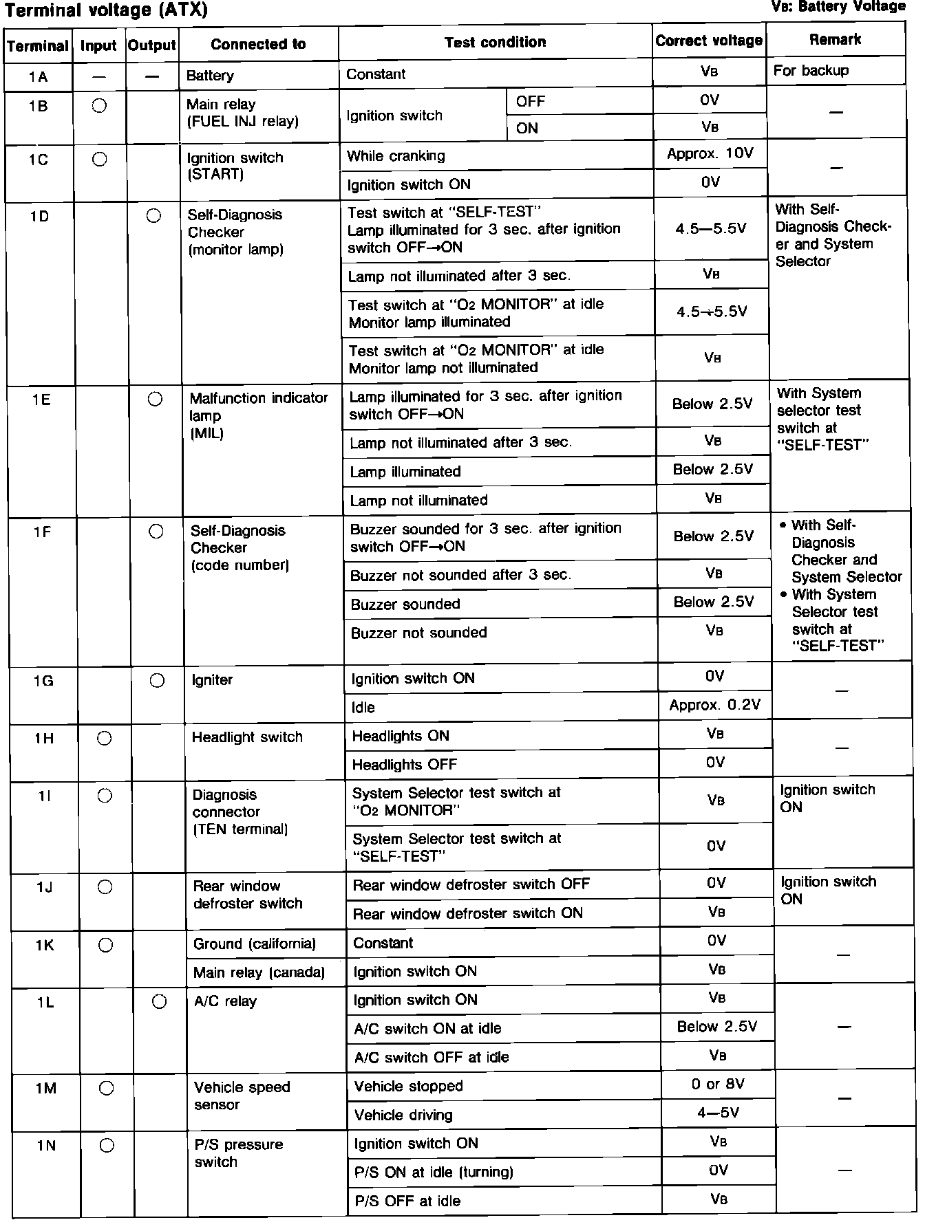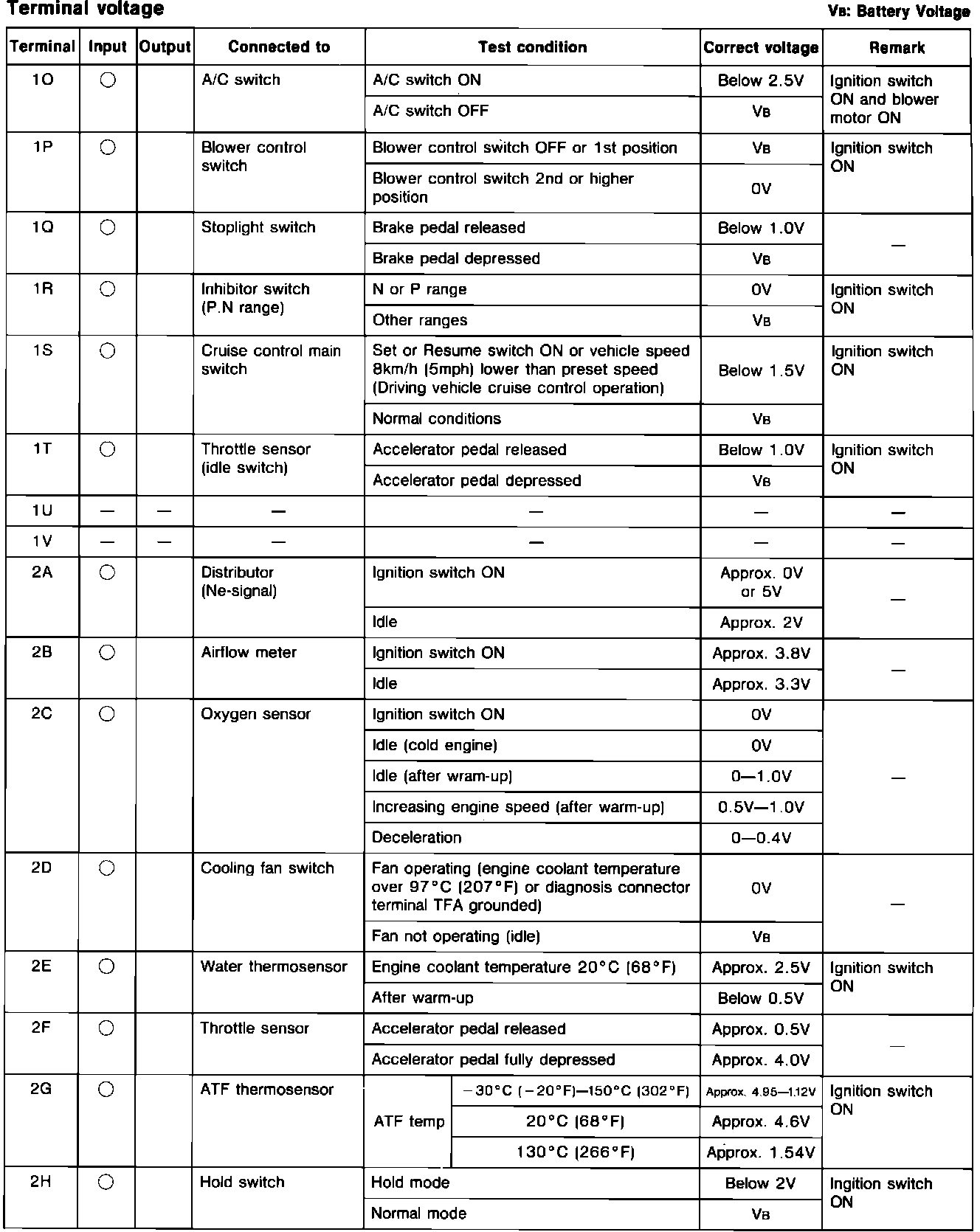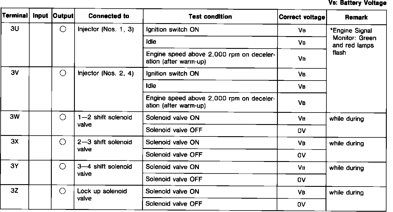 Engine Control System. A/T. ECU Pin Voltage Chart: