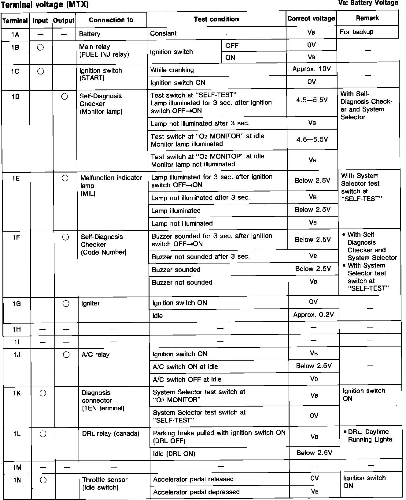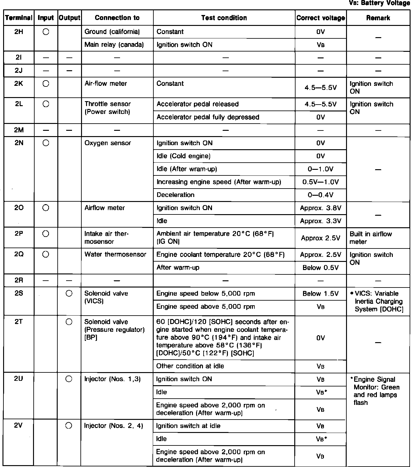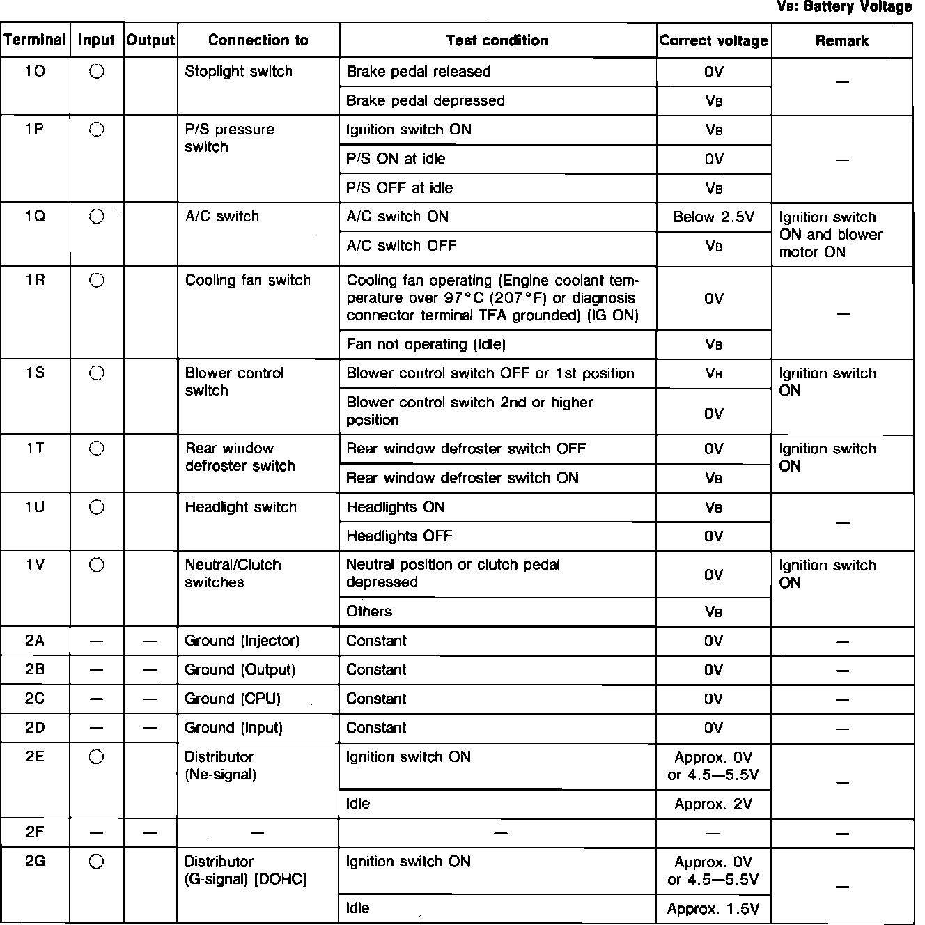 Engine Control System. M/T. ECU Pin Voltage Chart: