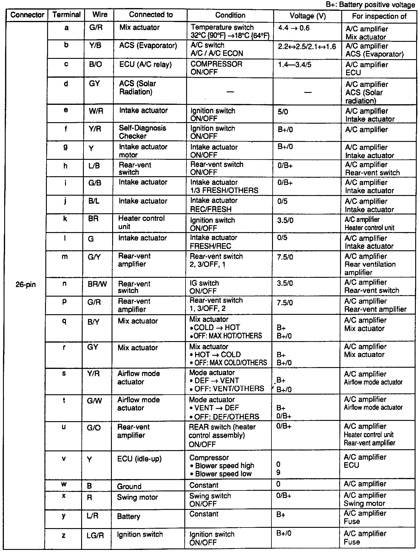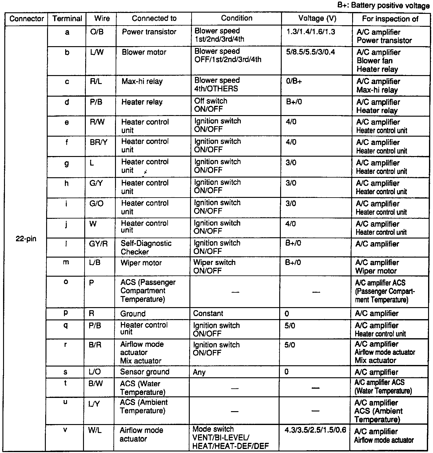 A/C Amplifier Terminal Voltage Table