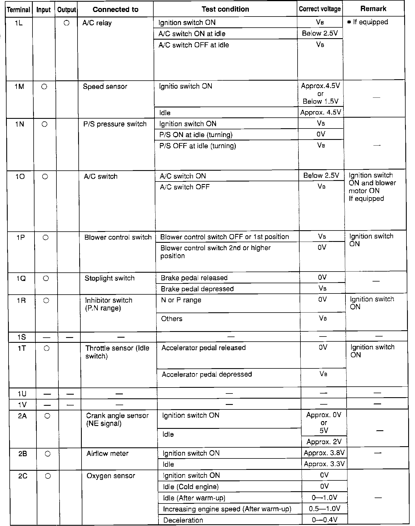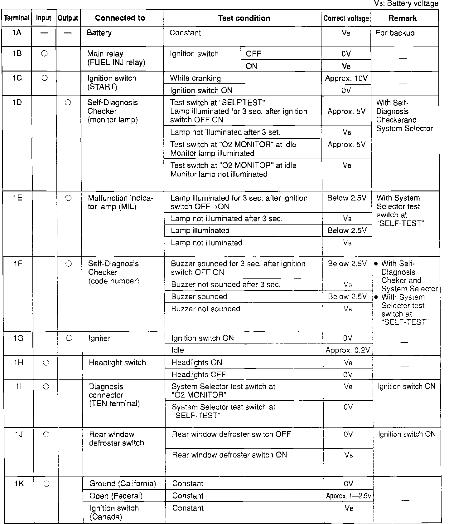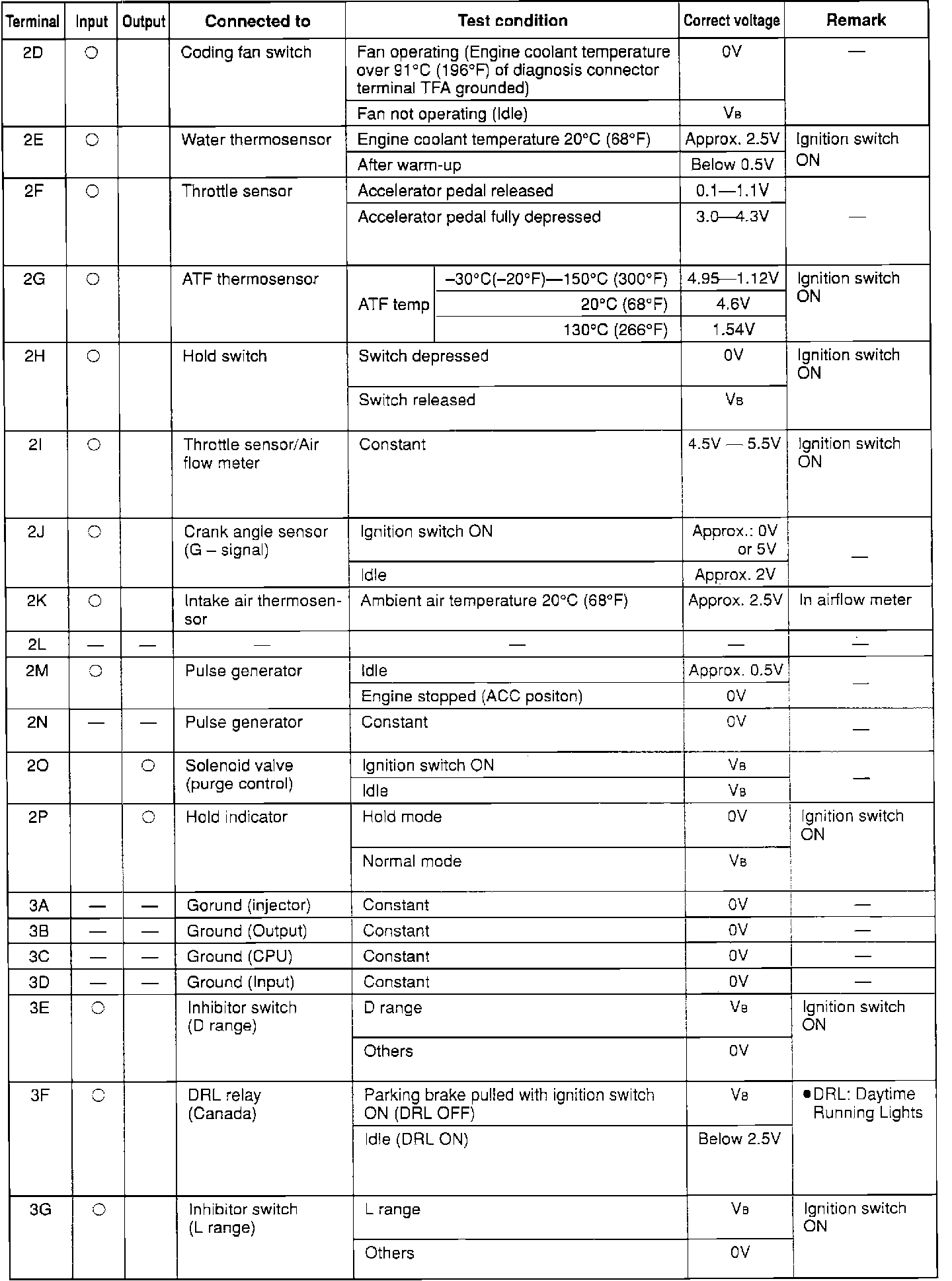 ECU PIN VOLTAGE CHART