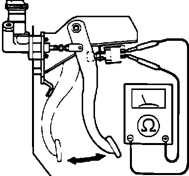 2. Check switch continuity with an ohmmeter. With clutch pedal depressed, there should be continuity between switch terminals. With clutch pedal released, there should be no continuity between switch terminals.